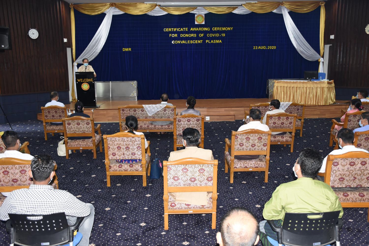 ကိုဗစ်-၁၉ လူနာများအားကုသရန်အတွက် သွေးရည်ကြည်များ လှူဒါန်းခဲ့သည့် အလှူရှင်များအား ဂုဏ်ပြုပွဲကျင်းပ