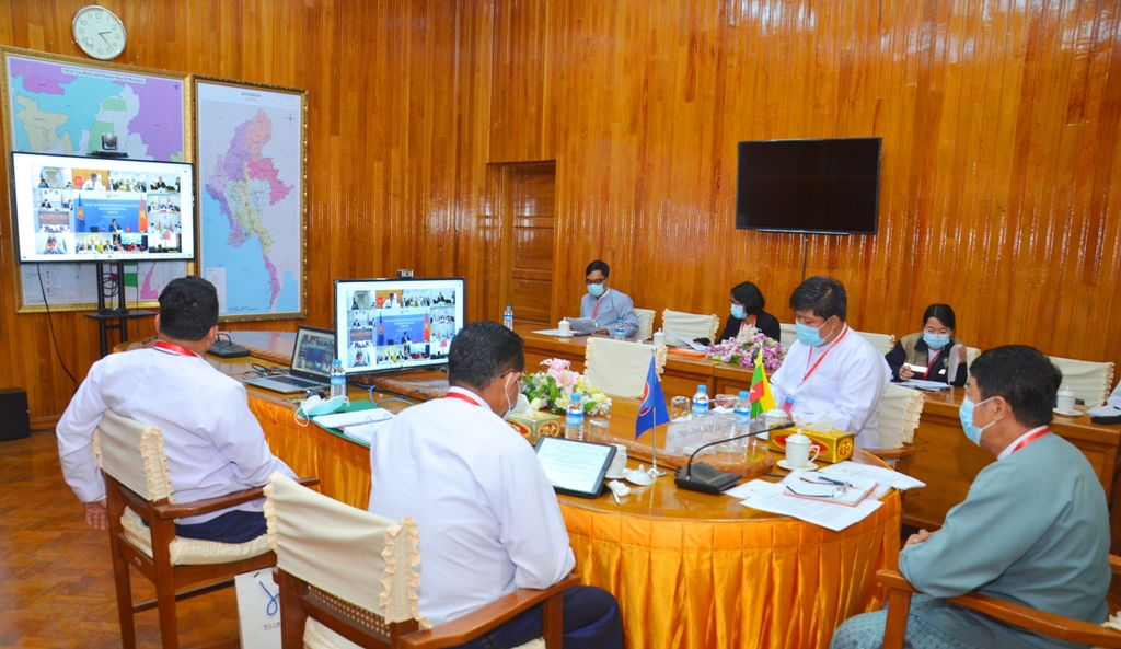 (၃၈) ကြိမ်မြောက် အာဆီယံစွမ်းအင်ဆိုင်ရာ အဆင့်မြင့်အရာရှိကြီးများ အစည်းအဝေးနှင့် ဆက်စပ်အစည်းအဝေး များ (38th Senior Officials Meeting on Energy (SOME) and Associated Meetings) ကို သြဂုတ် ၂၄ ရက်မှ ၂၇ ရက်အထိ ဗီယက်နမ်နိုင်ငံက အလှည့်ကျ အိမ်ရှင်နိုင်ငံအဖြစ် Video Conferencing စနစ်ဖြင့် ကျင်းပလျက်ရှိရာ လျှပ်စစ်နှင့်စွမ်းအင်ဝန်ကြီးဌာန အမြဲတမ်းအတွင်းဝန် ဦးသန်းဇော်နှင့် ကိုယ်စားလှယ် အဖွဲ့သည် ယနေ့မွန်းလွဲ ၁ နာရီတွင် နေပြည်တော်ရှိ လျှပ်စစ်နှင့်စွမ်းအင်ဝန်ကြီးဌာန၊ ရုံးအမှတ်(၂၇)မှ ပါဝင်တက်ရောက်သည်။