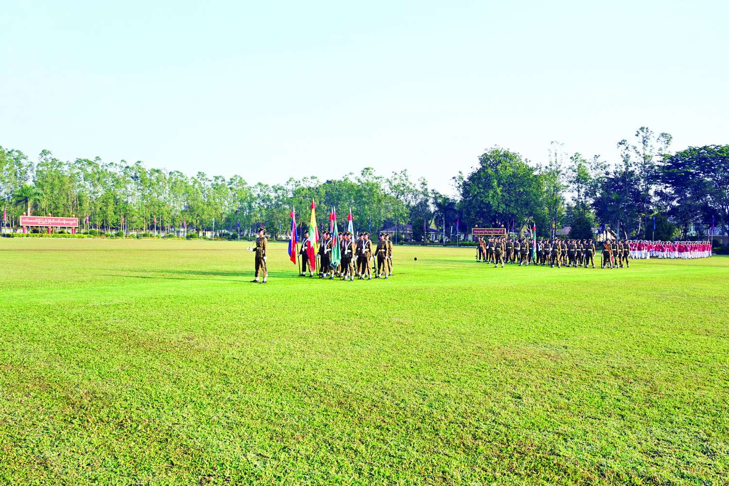 သင်တန်းတက်ရောက်စဉ်ကာလအတွင်း ရုပ်ပိုင်းနှင့် စိတ်ပိုင်းဆိုင်ရာ ကြံ့ခိုင်သန်မာမှုရှိစေရေးအတွက် “ကျန်းမာကြံ့ခိုင်ရမည်၊ ကျွမ်းကျင်မှုရှိရမည်၊ ရဲစွမ်းသတ္တိရှိရမည်” ဟူသည့် လေ့ကျင့်ရေးမူဝါဒများနှင့်အညီ စနစ်တကျလေ့ကျင့်ပေးခဲ့ပြီးဖြစ်ကြောင်း၊ ထို့ကြောင့် ကျောင်းကသင်ကြားပေးလိုက်သည့် အတတ်ပညာများကို မမေ့မလျော့အောင် “အမြဲတမ်း လေ့ကျင့်ရမည်၊ အမြဲတမ်းစစ်ရေးသတိရှိရမည်၊ အမြဲတမ်းတိုက်ပွဲဝင် အသင့်ဖြစ်ရမည်” ဟူသည့် မြဲသုံးမြဲကို လက်ကိုင်ထားပြီး သင်တန်းကျောင်းတွင်သာမက တာဝန်ထမ်းဆောင်ချိန်များတွင်လည်း ပြန်လည်လေ့ကျင့်နေရန်လိုအပ်သကဲ့သို့ လက်တွေ့နယ်ပယ်တွင်လည်း ထိရောက်စွာအသုံးချကြရန် အလေးအနက်ထား မှာကြားလိုကြောင်း။