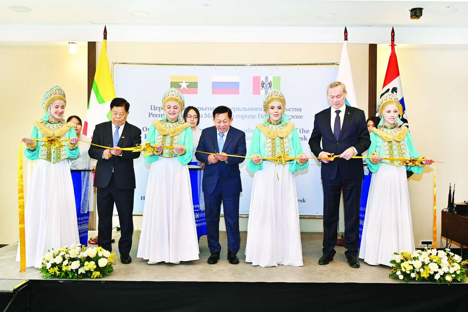 ရုရှားဖက်ဒရေးရှင်းနိုင်ငံ နိုဗိုစီဗစ်မြို့၊ ကောင်စစ်ဝန်ချုပ်ရုံးဖွင့်ပွဲအခမ်းအနားကို ယနေ့ဒေသစံတော်ချိန် နံနက်ပိုင်းတွင် Grand Autograph ဟိုတယ်၌ ကျင်းပပြုလုပ်ရာ ရုရှားနိုင်ငံသို့ တရားဝင်ချစ်ကြည်ရေးခရီး ရောက်ရှိနေသည့် နိုင်ငံတော်စီမံအုပ်ချုပ်ရေးကောင်စီဥက္ကဋ္ဌ နိုင်ငံတော်ဝန်ကြီးချုပ် ဗိုလ်ချုပ်မှူးကြီး မင်းအောင်လှိုင် တက်ရောက်ဖွင့်လှစ်ပေးသည်။
