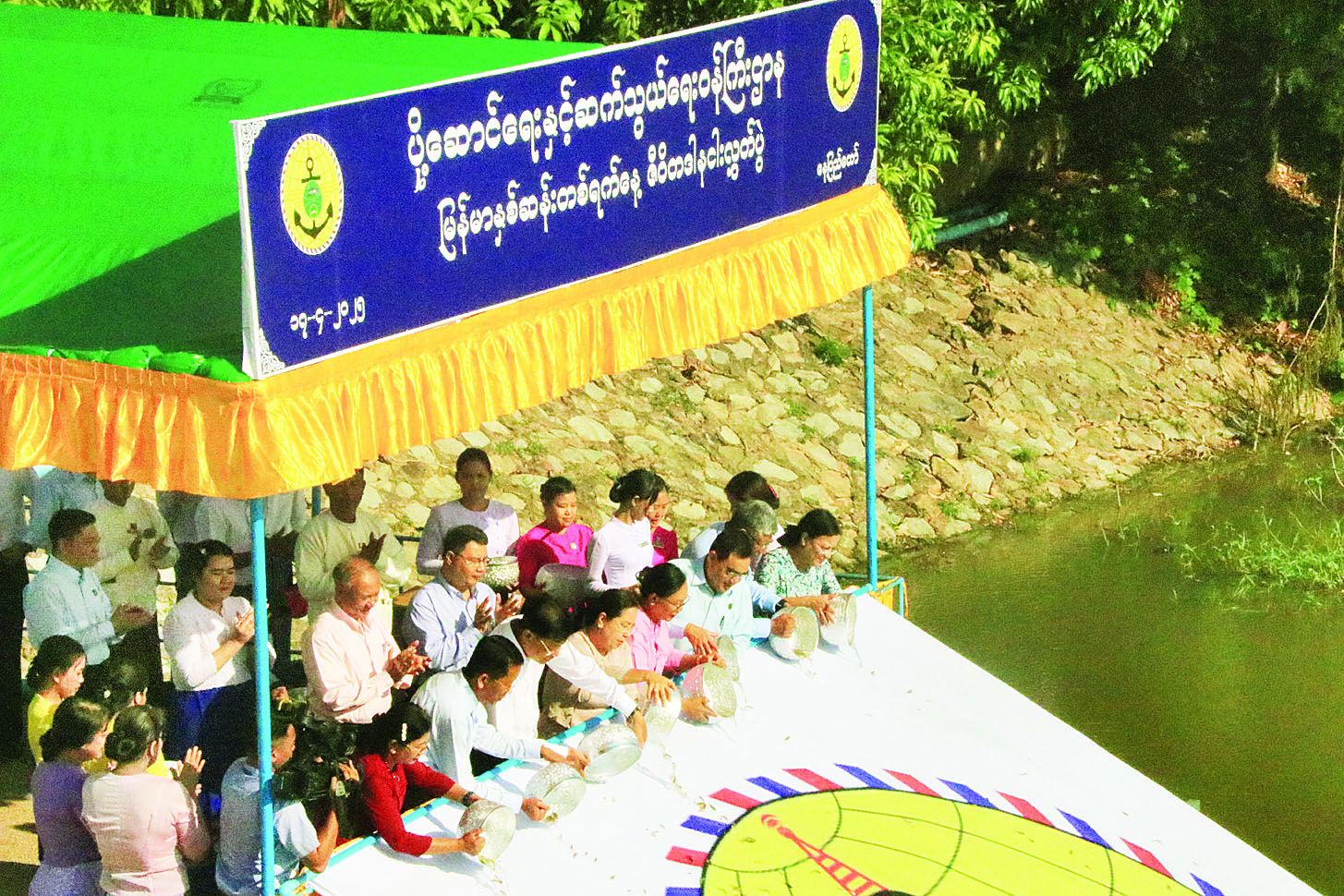 အခမ်းအနားကျင်းပရာတွင် ဦးစွာ ဒုတိယဝန်ကြီးချုပ်နှင့် ပို့ဆောင်ရေးနှင့်ဆက်သွယ်ရေးဝန်ကြီးဌာန ပြည်ထောင်စုဝန်ကြီးနှင့် ဇနီးတို့နှင့်အတူ ဒုတိယဝန်ကြီးများနှင့် ၎င်းတို့၏ဇနီးများက ရွှေဝါငါးကြင်း သားပေါက်များကို ငလိုက်ရာဘာရေလွှဲဆည်အတွင်းသို့ လွှတ်ပေး ကြသည်။