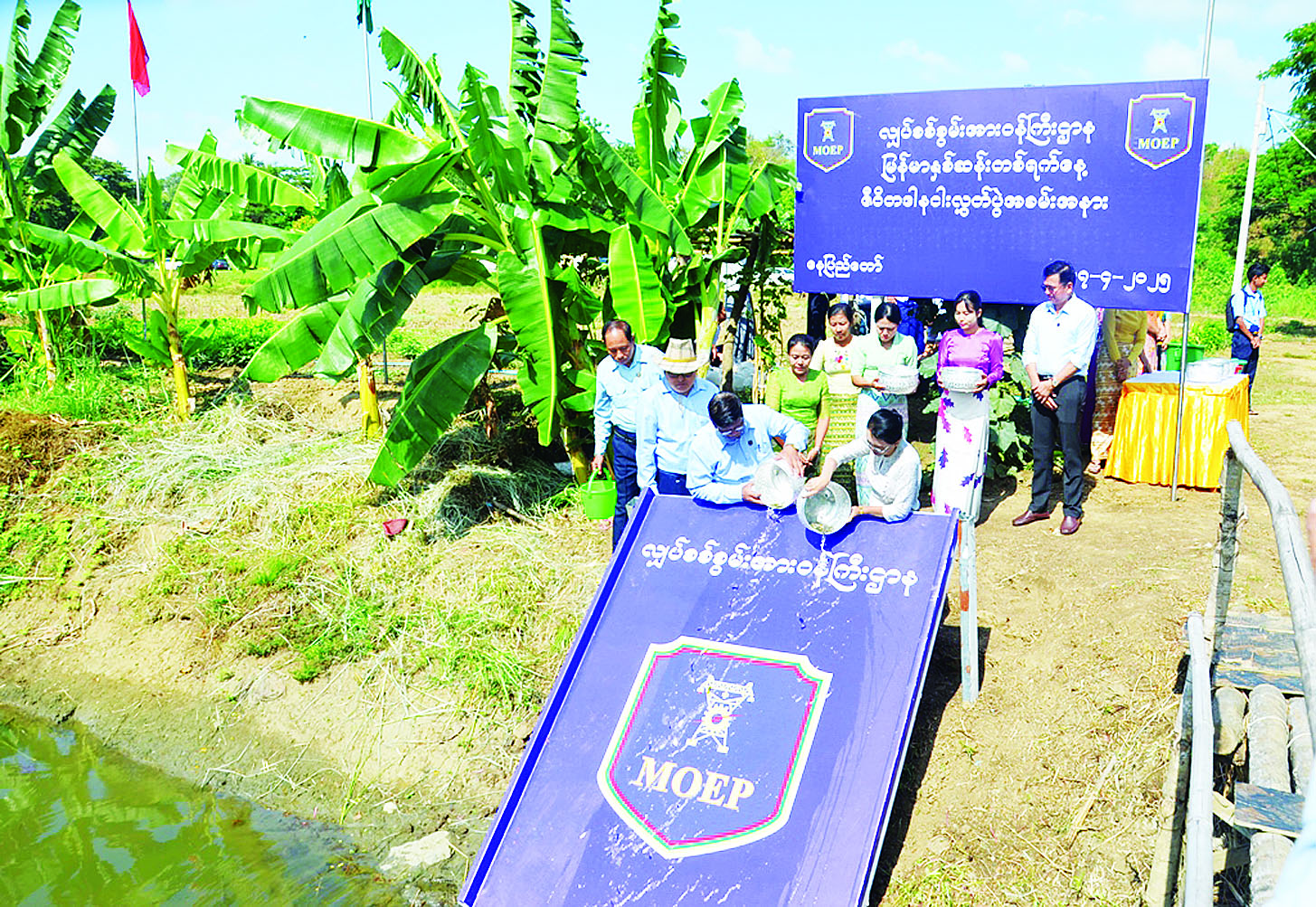 ဦးစွာ ပြည်ထောင်စုဝန်ကြီး ဦးဉာဏ်ထွန်းနှင့် ဇနီး၊ ဒုတိယဝန်ကြီး ဦးအေးကျော်နှင့် ဇနီး၊ ပြည်ထောင်စုဝန်ကြီးရုံး၊ ဦးစီးဌာနနှင့်လုပ်ငန်းများမှ ညွှန်ကြားရေးမှူးချုပ်များ၊ ဦးဆောင် ညွှန်ကြားရေးမှူးများနှင့် ၎င်းတို့၏ ဇနီးများ၊ အရာထမ်း၊ အမှုထမ်းများက မြန်မာနှစ်ဆန်း တစ်ရက်နေ့ ဇီဝိတဒါနအဖြစ် ငါးမြစ်ချင်း ငါးသားပေါက်များနှင့် ငှက်များအား ကုသိုလ် မင်္ဂလာပြု၍ စုပေါင်းဘေးမဲ့လွှတ်ခဲ့ကြသည်။