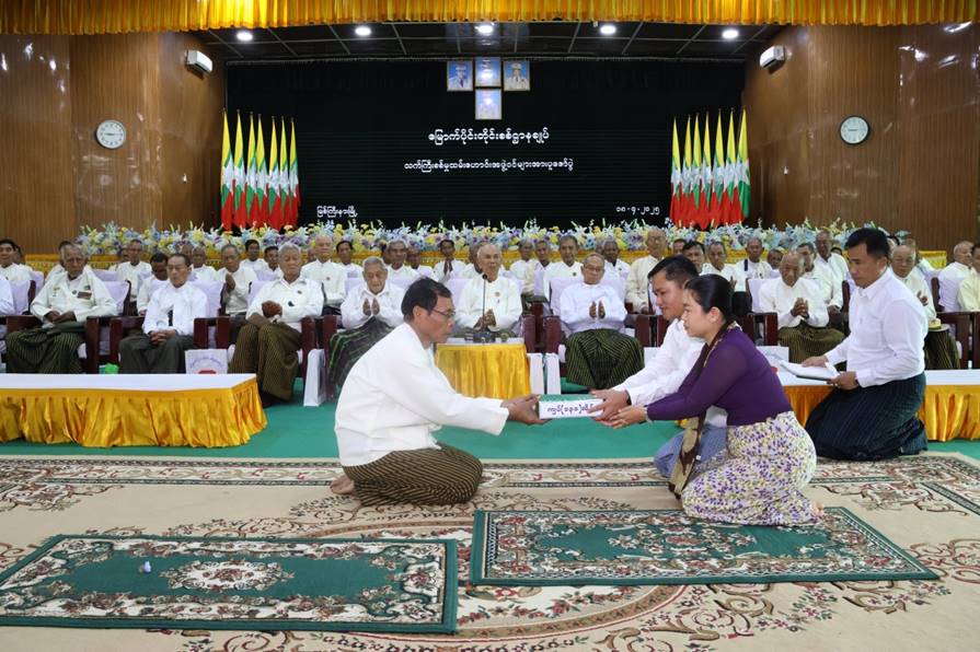 ဦးစွာတိုင်းမှူးနှင့်အဖွဲ့ဝင်များက အသက်(၇၈)နှစ်အထက် အပူဇော်ခံသက်ကြီး စစ်မှုထမ်းဟောင်းများအား ရှိခိုးကန်တော့၍ ကန်တော့ခံပစ္စည်းများပေးအပ်ရာ သက်ကြီးစစ်မှုထမ်းဟောင်းများကိုယ်စား စစ်မှုထမ်းဟောင်း တစ်ဦးက ကျေးဇူးတင် စကားပြန်လည်ပြောကြားသည်။ ထို့နောက် အခမ်းအနားသို့ မတက်ရောက်နိုင်သည့် အပူဇော်ခံသက်ကြီး စစ်မှုထမ်းဟောင်းအဖွဲ့ဝင်များအတွက် မြို့နယ်စစ်မှုထမ်းဟောင်း ဥက္ကဋ္ဌက ကန်တော့ခံပစ္စည်းများနှင့် အလှူငွေများ လက်ခံရယူသည်။