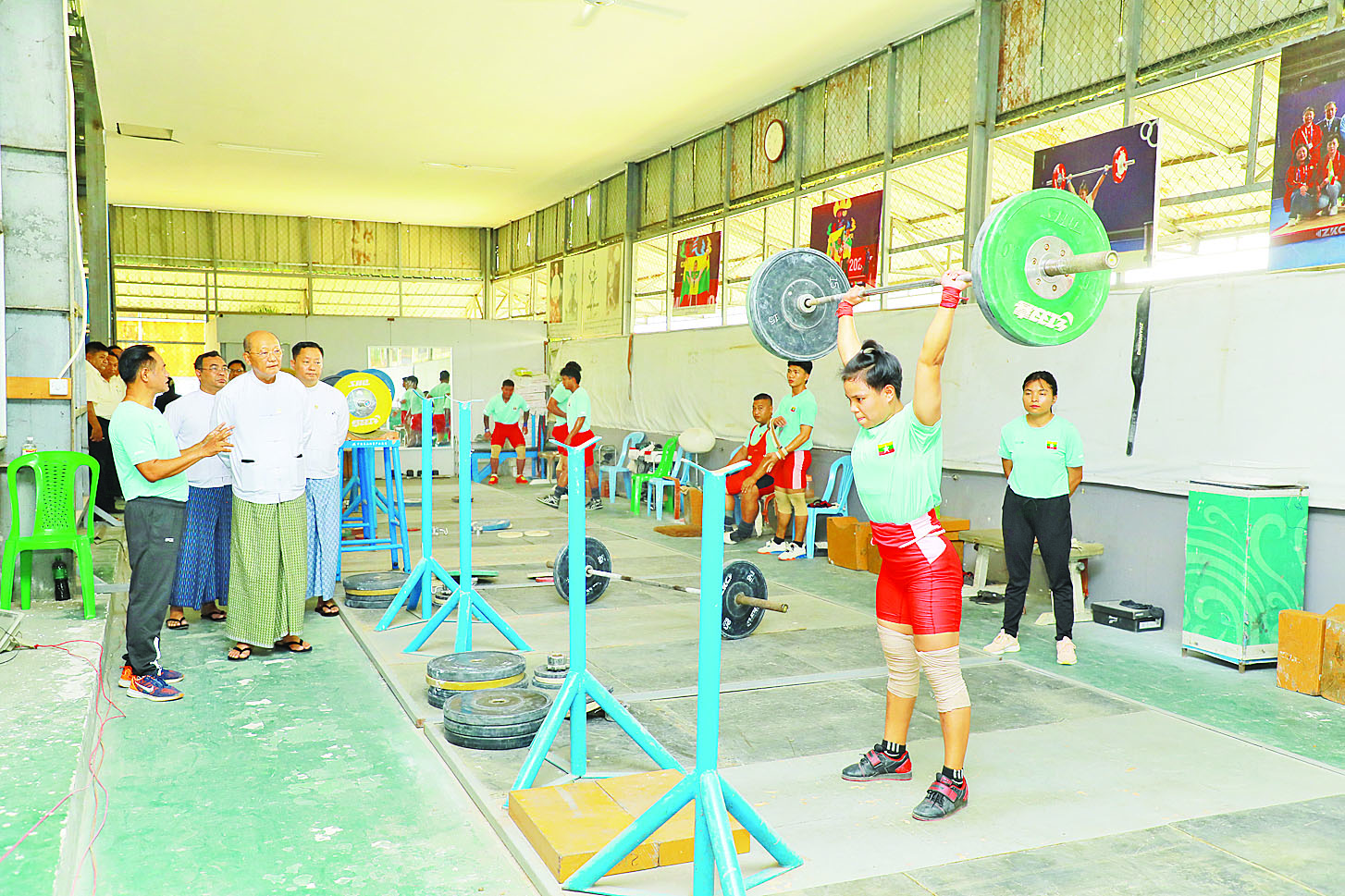 အားကစားနှင့် လူငယ်ရေးရာဝန်ကြီးဌာန ပြည်ထောင်စုဝန်ကြီး Jeng Phang နော်တောင်သည် ဒုတိယဝန်ကြီးများဖြစ်ကြသည့် ဦးထိန်လင်း၊ ဦးဇင်မင်းထက်၊ တာဝန်ရှိသူများနှင့်အတူ ယနေ့ညနေပိုင်းတွင် (၃၃) ကြိမ်မြောက် အရှေ့တောင်အာရှ အားကစားပြိုင်ပွဲသို့ ဝင်ရောက်ယှဉ်ပြိုင်ရန်အတွက် နေပြည်တော်တွင် စခန်းဝင်လေ့ကျင့်လျက်ရှိ သည့် အားကစားနည်းများ အနက်မှလက်ဝှေ့၊ အလေးမနှင့် မြားပစ်အားကစားအဖွဲ့များ၏ လေ့ကျင့်နေမှုကို ကြည့်ရှုစစ်ဆေးသည်။