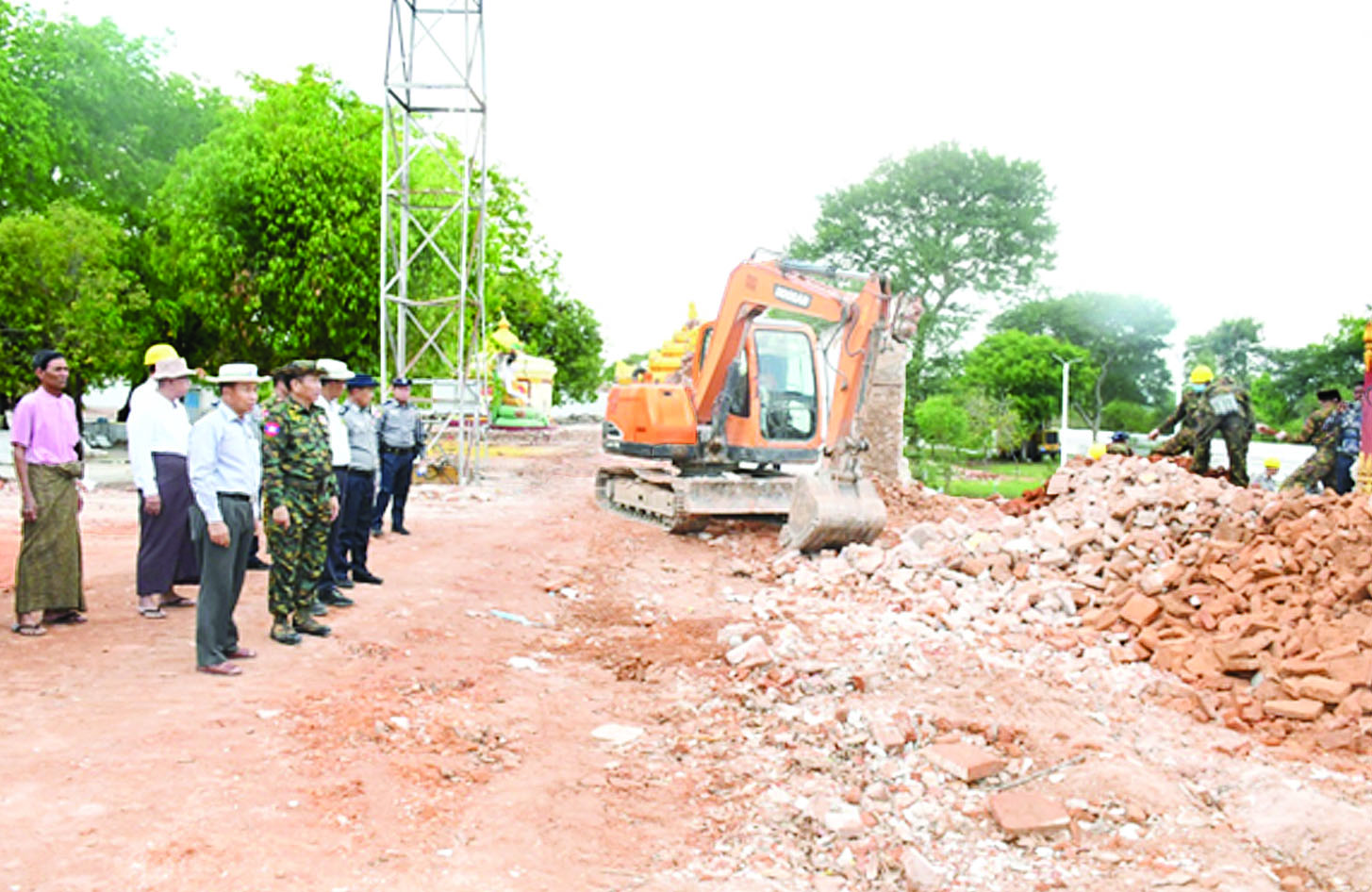 ယင်းနောက် စစ်ကိုင်းမြို့စီတီးရပ်ကွက်ရှိ ရာဇာမဏိစူဠာ ကောင်းမှုတော်စေတီ၊ စစ်ကိုင်းတောင်ရိုးရှိ ဆွမ်းဦးပုညရှင်စေတီနှင့် ဥမင်သုံးဆယ်စေတီ၊ သောတပန်ရပ်ကွက်ရှိ လေးကျွန်းမာရ်အောင်မြတ်စွာဘုရား၊ ပိုးတန်းရပ်ကွက်ရှိ ဘေသဇ္ဇကျောင်းတိုက်၊ ထွဋ်ခေါင်ရပ်ကွက်ရှိ ရတနာထွဋ်ခေါင်စေတီ၊ နန်းဦး မြို့သစ်ရှိ မရှိခဏစေတီနှင့် မဟာစေတီလှတို့၌ ငလျင်ဒဏ်ကြောင့် ပြိုကျပျက်စီးနေသော သာသနိကအဆောက်အအုံများနှင့် အရန်စေတီများကို တပ်မတော်သားများ၊ မြန်မာနိုင်ငံရဲတပ်ဖွဲ့ဝင်များ၊ မြန်မာနိုင်ငံမီးသတ်တပ်ဖွဲ့ဝင်များ၊ စေတနာရှင်ပြည်သူများနှင့် စေတနာရှင်ကုမ္ပဏီများမှ ပူးပေါင်း၍ စုပေါင်းလုပ်အားပေး ရှင်းလင်းဖယ်ရှားနေမှုအခြေအနေများအား သွားရောက်ကြည့်ရှုအားပေးကြသည်။