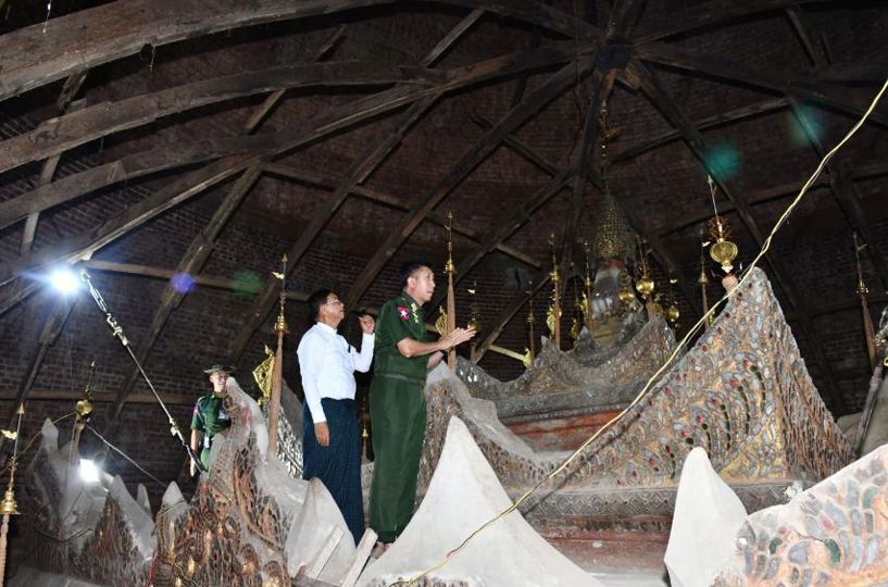 ထို့အတူ ကာကွယ်ရေးဦးစီးချုပ်ရုံး(ကြည်း)မှ ဒုတိယဗိုလ်ချုပ်ကြီး စိုးတင့်နိုင်သည် တာဝန်ရှိသူများနှင့်အတူ မန္တလေးမြို့၊ အမရပူရမြို့နယ်ရှိ ရွှေကျက်ကျဆုတောင်းပြည့် မြတ်စွာဘုရားသို့သွားရောက်၍ ငလျင်ဒဏ်ကြောင့်ထိခိုက်ပျက်စီးခဲ့သည့်နေရာများအား ကြည့်ရှုစစ်ဆေးပြီး အပျက်အစီးများ အမြန်ဆုံးဖယ်ရှားရှင်းလင်းနိုင်ရေးနှင့် ပြန်လည်တည်ဆောက်ရေးလုပ်ငန်းများ ဆောင်ရွက်နိုင်ရေးတို့အတွက် ပေါင်းစပ်ညှိနှိုင်း ဆောင်ရွက်ပေးသည်။