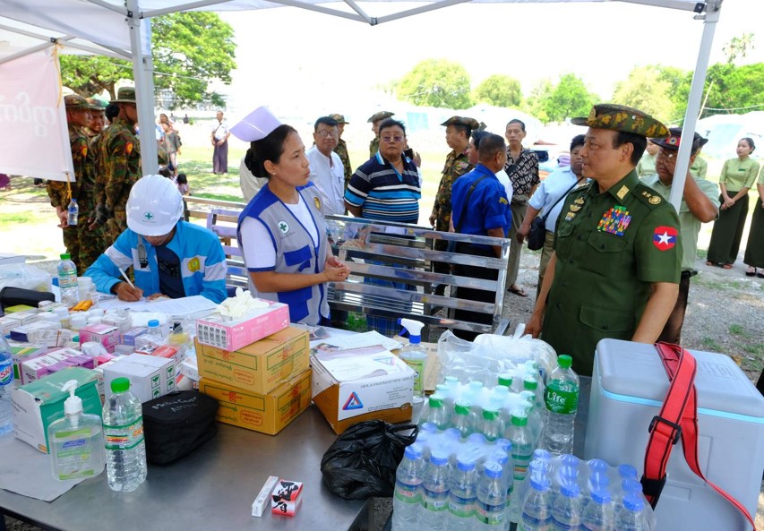 မြန်မာနိုင်ငံတွင် လှုပ်ခတ်ခဲ့သော မန္တလေးငလျင်ကြီးကြောင့် လမ်းတံတား၊ အဆောက်အအုံများ ထိခိုက်ပျက်စီးခဲ့ရသည့်နေရာများ၌ ကူညီကယ်ဆယ်ရေးနှင့် ပြန်လည်ထူထောင်ရေးလုပ်ငန်းများကို တိုင်းစစ်ဌာနချုပ်အသီးသီးမှ တပ်မတော်သားများ၊ မြန်မာနိုင်ငံရဲတပ်ဖွဲ့ဝင်များ၊ မီးသတ်တပ်ဖွဲ့ဝင်များ၊ ပြည်ပနိုင်ငံများမှ ကူညီကယ်ဆယ်ရေးအဖွဲ့များ၊ ဌာနဆိုင်ရာဝန်ထမ်းများ၊ လူမှုကူညီရေးအသင်း/အဖွဲ့များနှင့် ဒေသခံပြည်သူများပူးပေါင်း၍ အချိန်နှင့်တစ်ပြေးညီ ကူညီဆောင်ရွက်ပေးလျက်ရှိသည်။