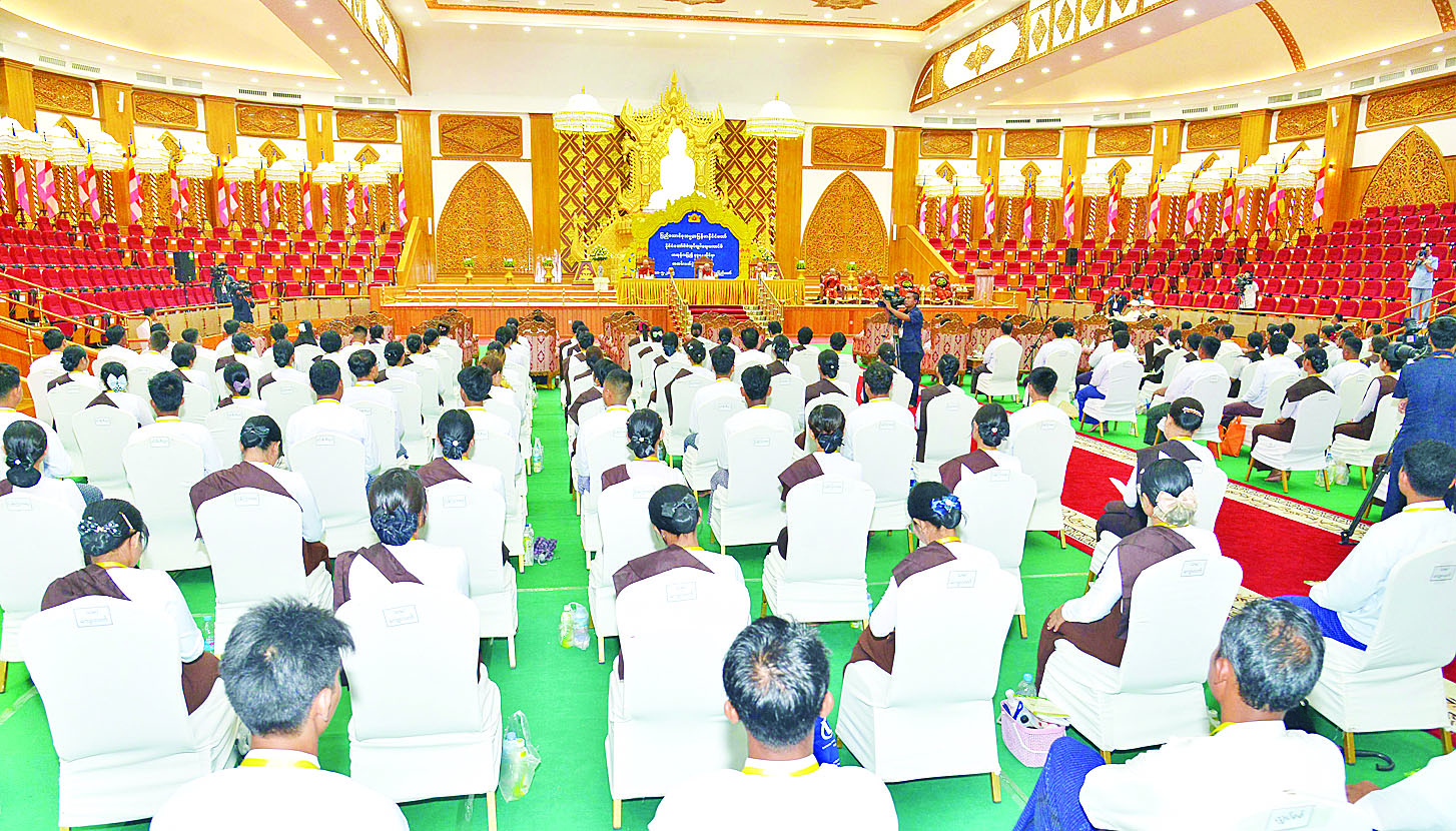 ယင်းနောက် သာသနာရေးနှင့်ယဉ်ကျေးမှုဝန်ကြီးဌာန ပြည်ထောင်စုဝန်ကြီး ဦးတင်ဦးလွင်က သဘာပတိဆရာတော်ကြီးများနှင့် စာတမ်းရှင် ဆရာတော်များအား စာတမ်းဖတ်ပွဲအခမ်းအနား ဂုဏ်ပြုမှတ်တမ်းလွှာများနှင့် နဝကမ္မအလှူတော်ငွေများ ဆက်ကပ်လှူဒါန်းသည်။