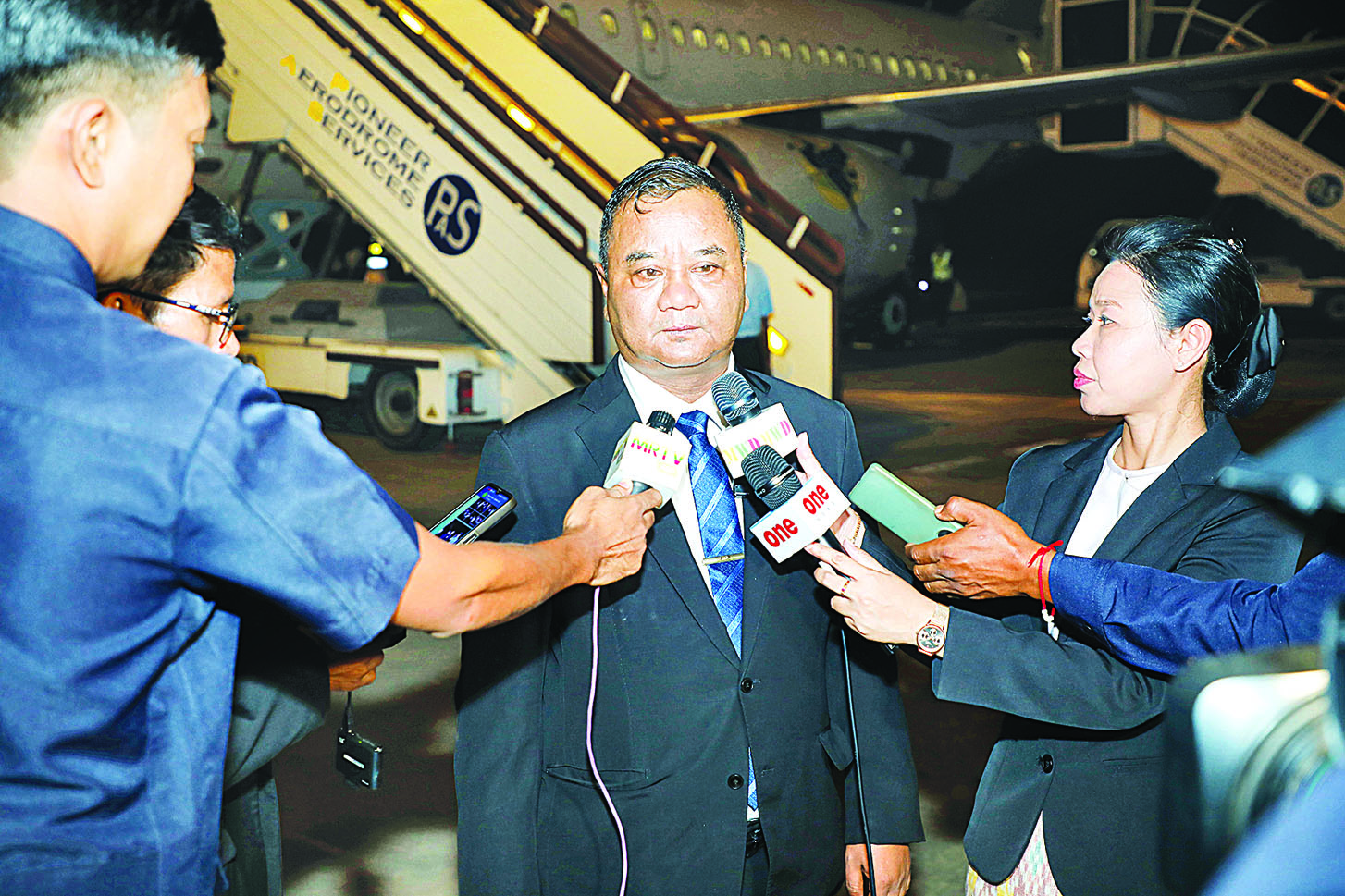 အဓိကပထမဦးဆုံးအပိုင်းပြောချင်တာကတော့ နိုင်ငံရေးပါတီတွေရဲ့အပိုင်းပေါ့။ နိုင်ငံရေးပါတီတွေရဲ့အပိုင်းမှာ ကြိုတင်ပြင်ဆင်မှုတွေ လုပ်ဆောင်ရမှာရှိတယ်။ ပြီးရင် ပြည်သူလူထုကိုအသိပေး ပညာပေးရမှာရှိတယ်။ ဒါတွေကိုလည်း ဆက်လက်လုပ်ဆောင်သွားဖို့ ကျွန်တော့်အနေနဲ့ နံပါတ်တစ်ပြောလိုတယ်။ နံပါတ်နှစ်ကတော့ ကျွန်တော်တို့ ပြည်သူလူထုရဲ့ အပိုင်းပါ။ ပြည်သူလူထုရဲ့အပိုင်းမှာ ကျွန်တော်တို့သည် ပါတီစုံဒီမိုကရေစီရွေးကောက်ပွဲ၊ ပါတီစုံဒီမိုကရေစီစနစ်ကို အလိုရှိတယ်လို့ ပြောပြီးပြီ။ ပါတီစုံဒီမိုကရေစီစနစ်ကိုအလိုရှိရင် ငြိမ်းချမ်းစွာ တရားမျှတရေး ရွေးကောက်ပွဲကျင်းပနိုင်ဖို့က အခြေခံလိုအပ်ချက်ဖြစ်တယ်။ ဒီရွေးကောက်ပွဲကို ငြိမ်းချမ်းစွာကျင်းပနိုင်ဖို့အတွက် ပြည်သူတစ်ရပ်လုံးက ဝိုင်းဝန်းကူညီပံ့ပိုးပေးကြပါ။ ဒီမိုကရေစီရဲ့ ဆန့်ကျင်ဘက်ဖြစ်တဲ့ အကြမ်းဖက်ဝါဒကို ပြတ်ပြတ်သားသား ဆန့်ကျင်ကြပါလို့ ကျွန်တော့် အနေနဲ့ ပြောချင်ပါတယ်။ ဒီရုရှားနဲ့ မြန်မာရဲ့ဆက်ဆံရေးကကြာပါပြီ၊ ခိုင်မြဲတဲ့ဆက်ဆံရေးဖြစ်တယ်။ ပထမဦးဆုံးဆက်ဆံရေးကတော့ တပ်မတော်အချင်းချင်း ဆက်ဆံရေးကနေ စခဲ့တာပေါ့။ ယခင်တပ်မတော် အစိုးရလက်ထက် နိုင်ငံတော်ငြိမ်ဝပ်ပိပြားမှုတည်ဆောက်ရေးအဖွဲ့၊ နိုင်ငံတော်အေးချမ်းသာယာရေးနဲ့ ဖွံ့ဖြိုးရေးကောင်စီလက်ထက်က တည်းကနေစခဲ့တာဖြစ်ပါတယ်။အခုအချိန်မှာတော့ ဒီရုရှားနဲ့မြန်မာရဲ့ဆက်ဆံရေးဟာ တပ်မတော်နယ်ပယ်တင်မကဘဲနဲ့ ကဏ္ဍပေါင်းစုံမှာပါ ဖွံ့ဖြိုးတိုးတက်လာပြီဖြစ်တယ်။ ဆက်လက်ပြီးလည်း ဖွံ့ဖြိုးတိုးတက်လာမှာ ဖြစ်ပါတယ်။ ဒီအတွက်လည်း ဒီရုရှားကို ရောက်တဲ့အခါမှာ ကျွန်တော်တို့ မြန်မာတွေရောက်တဲ့အခါမှာပေါ့နော်။ ဒီအစိုးရတွေ ကျွန်တော်တို့ အစိုးရအချင်းချင်းတို့၊ တပ်မတော်အချင်းချင်းတော့ ကျွန်တော်မပြောသေးဘူး။ ပြည်သူအချင်းချင်း၊ ပြည်သူအချင်းချင်း ဆက်ဆံရေးပေါ့။ ရုရှားပြည်သူတွေရဲ့ မြန်မာပြည်သူလူထု အပေါ်မှာအမြင်၊ မြန်မာပြည်သူတွေရဲ့ ရုရှားပြည်သူ လူထုအပေါ်မှာအမြင်ဟာ တိုးတက်ခိုင်မာနေတယ် လို့မြင်ပါတယ်။ ဒီအတွက်လည်း ကျွန်တော်တို့ လိုလိုလားလားရှိတယ်လို့ မြင်ပါတယ်။ ဒီအတွက်လည်း ကျွန်တော်ဂုဏ်ယူပါတယ်။ ဒီနိုင်ငံတော် ဝန်ကြီးချုပ်ရဲ့ ခရီးစဉ်မှာ နှစ်(၈၀)ပြည့် ရုရှားရဲ့ မဟာမျိုးချစ်အောင်ပွဲ၊ အဲ့ဒီမှာ ကျွန်တော်တို့ နိုင်ငံခေါင်းဆောင်တွေ တော်တော်များများတက်ကြတယ်။ နိုင်ငံခေါင်းဆောင်တွေ တော်တော်များများ တက်ကြတဲ့အခါမှာ ဒီမြန်မာနိုင်ငံ၊ နိုင်ငံတော်ဝန်ကြီးချုပ် ဗိုလ်ချုပ်မှူးကြီး မင်းအောင်လှိုင်အနေနဲ့ ဒီခေါင်းဆောင်တွေနဲ့တွေ့ဆုံခဲ့တယ်။ တွေ့ဆုံခဲ့ပြီးစကားပြောခဲ့တယ်။ မြန်မာနိုင်ငံရဲ့အခ