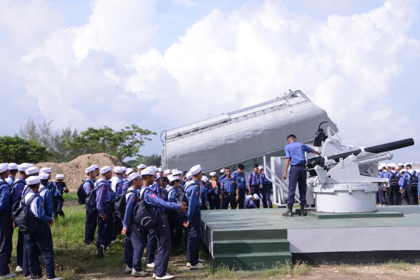 ထိုသို့ လေ့ကျင့်သင်ကြားလျက်ရှိရာ ယနေ့နံနက်ပိုင်းတွင် စခန်းပေါင်းစုံမှ သင်တန်းသား၊ သင်တန်းသူများသည် သင်တန်းနည်းပြများ၊ သင်တန်းအုပ်ချုပ်သူများနှင့် တာဝန်ရှိသူများလိုက်ပါ၍ သန်လျင်တပ်နယ်ရှိ ရေတပ်လေ့ကျင့်ရေးဌာနချုပ်သို့ ရောက်ရှိကြရာ တာဝန်ရှိသူများက ကြိုဆို၍ သီရိမဟာဇေယျကျော်ထင်ခန်းမ၌ တပ်မတော်(ရေ) Documentary အား ပြသပြီး ရေကြောင်းပြခန်းနှင့် ဥတ္တရဆောင်ရှိ စာသင်ခန်းတို့အား လေ့လာခြင်း၊ Torpedo Trainer နှင့် ရေတပ်အမြောက်များလေ့လာခြင်း၊ Welding Simulator Electrical Trainer & Cutaway Model များအား လေ့လာခြင်း၊ Damage Control Simulator-Zarmani အား လေ့လာခြင်း၊ Ship Handling Simulator နှင့် Engine Room Simulator များအား လေ့လာခြင်းနှင့် သမိုင်းဝင်စစ်ရေယာဉ်(မေယု)တို့အား လှည့်လည်ကြည့်ရှုလေ့လာခြင်းများ ဆောင်ရွက်ကြရာ တာဝန်ရှိသူများက လိုက်လံရှင်းလင်းပြသကြသည်။