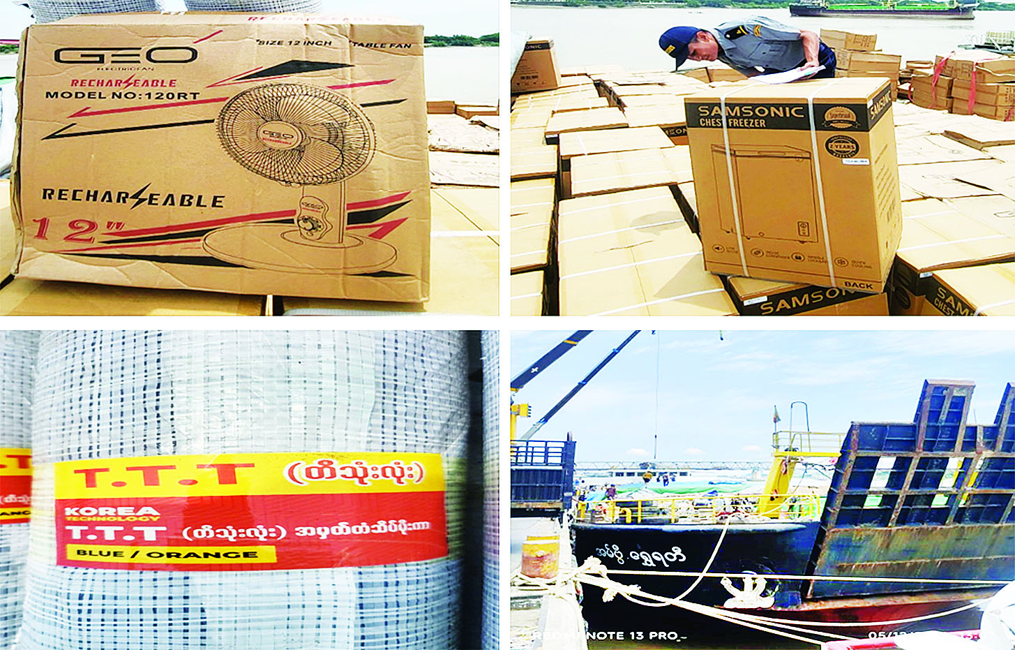 ထို့အပြင် အကောက်ခွန်ဦးစီးဌာန၏ စီမံခန့်ခွဲမှုဖြင့် တာဝန်ကျပူးပေါင်းအဖွဲ့ များက စစ်ဆေးမှုများ ဆောင်ရွက်ခဲ့ရာ မြန်မာ့စက်မှုဆိပ်ကမ်း၌ ကုန်သေတ္တာ လေးလုံးအတွင်းမှ တရားဝင်စာရွက် စာတမ်း အထောက်အထား တင်ပြနိုင်ခြင်းမရှိသည့် လုပ်ငန်းသုံးပစ္စည်းတစ်မျိုး (ခန့်မှန်းတန်ဖိုးငွေကျပ် ၈၁၈၂၀၈၃၀၀) ကိုလည်းကောင်း၊ မုတ္တမဆိပ်ကမ်း၌ ကော့သောင်းမြို့မှ ရန်ကုန်မြို့သို့ ဆိုက်ကပ်လာသော ရေယာဉ်တစ်စင်းပေါ်မှ တရားဝင်စာရွက်စာတမ်းအထောက်အထားတင်ပြနိုင်ခြင်းမရှိသည့် လူသုံးကုန်ပစ္စည်းနှစ်မျိုး၊ လုပ်ငန်းသုံးပစ္စည်းတစ်မျိုး (ခန့်မှန်းတန်ဖိုးငွေကျပ် ၄၆၄၁၈၈၁၉)နှင့် အဆိုပါပစ္စည်းများ တင်ဆောင်လာသည့် MV. Shwe Yati ရေယာဉ်တစ်စင်း (ခန့်မှန်းတန်ဖိုးငွေကျပ် ၂၅၀၀၀၀၀၀၀၀) ကိုလည်းကောင်း စုစုပေါင်း ခန့်မှန်းတန်ဖိုး ငွေကျပ် ၃၃၆၄၆၂၇၁၁၉ ကို ဖမ်းဆီးရမိခဲ့ပြီး အကောက်ခွန် လုပ်ထုံးလုပ်နည်းများနှင့်အညီ အရေးယူဆောင်ရွက်လျက် ရှိသည်။