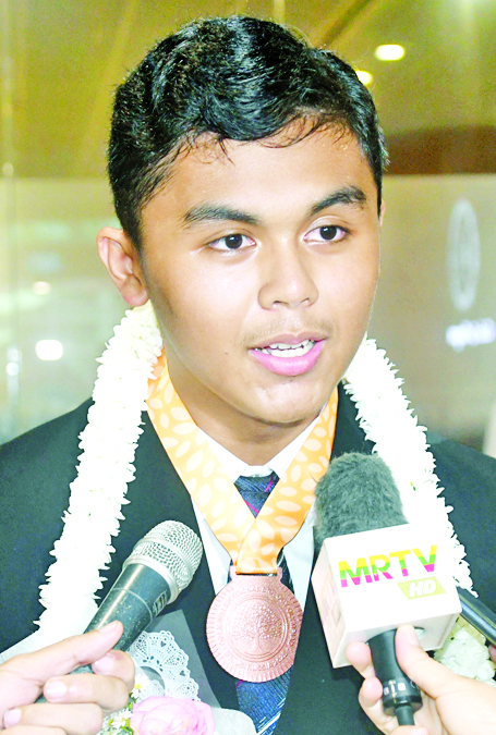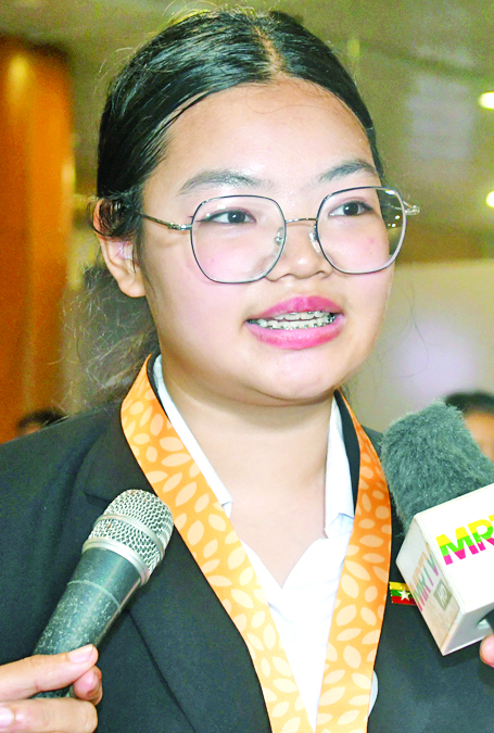 ကျွန်မကတော့ အထက (၁) ဒဂုံမှ Grade – 9 အောင်မြင်ပြီးတဲ့ ကျောင်းသူ မရွှန်းလဲ့ဝတီကျော် ဖြစ်ပါတယ်။ ပြိုင်ပွဲဝင် ၁၅ နိုင်ငံမှာ သီအိုရီအပိုင်း၊ လက်တွေ့အပိုင်းနဲ့ Project Round အပိုင်းသုံးပိုင်းနဲ့ ယှဉ်ပြိုင်ခဲ့ရပါတယ်။ ပြိုင်ပွဲဝင် ၇၅ ဦးထဲမှာ သမီးက တတိယဆုရရှိခဲ့ပါတယ်။ နိုင်ငံ့ဂုဏ်ဆောင်ရတာ အလွန်ဝမ်းသာပါတယ်။ တခြားနိုင်ငံက ပြိုင်ပွဲဝင်တွေနဲ့ မိတ်ဆွေ ဖြစ်ခွင့်ရခဲ့တဲ့အပြင် သမီးတို့နိုင်ငံရဲ့ ရိုးရာယဉ်ကျေးမှုတွေ ဖလှယ်ခွင့်ရတဲ့အတွက် ဝမ်းသာပါတယ်။ ဒီပြိုင်ပွဲကို သမီးယှဉ်ပြိုင်ခွင့်ရတာ အလွန်ဂုဏ်ယူပါတယ်။ အခုလို နိုင်ငံ့ဂုဏ်ဆောင်ပြီးတော့ ပထမဦးဆုံး သွားရောက်ယှဉ်ပြိုင်ရာမှာ တတိယဆုရခဲ့တဲ့အတွက် ဝမ်းသာပါတယ်။ တခြားနိုင်ငံတကာပြိုင်ပွဲတွေလည်း ယှဉ်ပြိုင်နိုင်အောင် ကြိုးစားသွားပါမယ်။