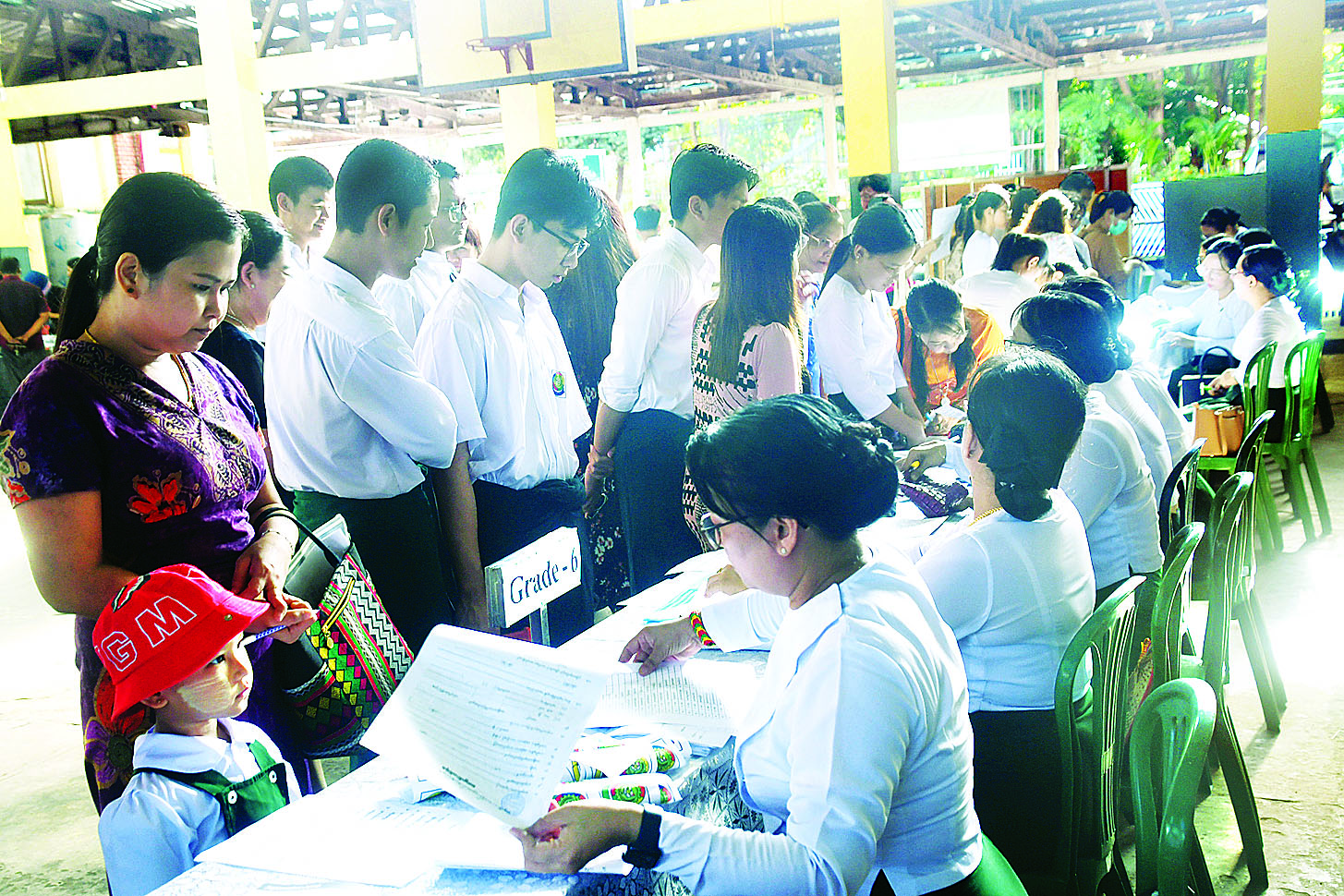 ရန်ကုန်မြို့တွင်းရှိ အခြေခံပညာကျောင်းများတွင် ယနေ့နံနက်ပိုင်းမှစတင်၍ ကျောင်းအပ်နှံရေး လုပ်ငန်းစဉ်များကို စတင်ဆောင်ရွက်လျက်ရှိရာ တာဝန်ကျ ဆရာဆရာမများက ကျောင်းသားမိဘ များနှင့် ကျောင်းသား ကျောင်းသူများကို ကျောင်းလာရောက်အပ်နှံရာတွင် အဆင်ပြေချောမွေ့စေရေး၊ ကျောင်းသားများ စာရင်းပေးသွင်းရာတွင် စည်းကမ်းတကျဖြစ်စေရေးတို့အတွက် ကြီးကြပ်ဆောင်ရွက်ပေးကြသည်။