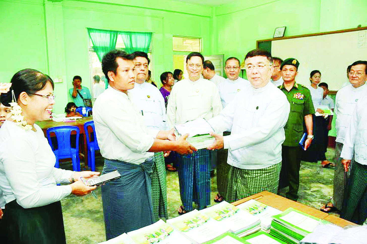 ယင်းနောက် ပြည်ထောင်စုဝန်ကြီးနှင့်အဖွဲ့သည် အခမဲ့ပုံနှိပ်များ၊ ဗလာစာအုပ်များ၊ ဘောပင်များ၊ခဲတံများ၊ ကျောင်းဝတ်စုံများ၊ ထောက်ပံ့ပစ္စည်းများကိုပေးအပ်ရာ သက်ဆိုင်ရာ မြို့နယ်ပညာရေးမှူးများက လက်ခံရယူကြပြီး ဇမ္ဗူသီရိမြို့နယ် အမှတ်(၁၁) အခြေခံပညာအထက်တန်းကျောင်း ကျောင်းသား ကျောင်းသူများက “ဇာတိမာန်”သီချင်းဖြင့် ဖျော်ဖြေကြသည်။