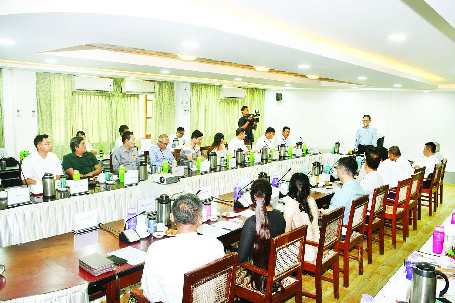ထို့နောက် တိုင်းဒေသကြီး လူမှုရေးရာဝန်ကြီး၊ မြန်မာနိုင်ငံရုပ်ရှင်အစည်းအရုံးဥက္ကဋ္ဌနှင့် ညှိနှိုင်းအစည်းအဝေးသို့ တက်ရောက်လာကြသည့် ရုပ်ရှင်ရုံပိုင်ရှင်များက ရုပ်ရှင်ဇာတ်ကားများရုံတင်ပြသရေးဆိုင်ရာ ကိစ္စရပ်များနှင့်စပ်လျဉ်းပြီး ဆွေးနွေးတင်ပြကြရာ ပြည်ထောင်စုဝန်ကြီးက ဆွေနွေးတင်ပြချက်များအပေါ် ပေါင်းစပ်ညှိနှိုင်းဆောင်ရွက်ပေးပြီး နိဂုံးချုပ်အမှာစကားပြောကြားသည်။