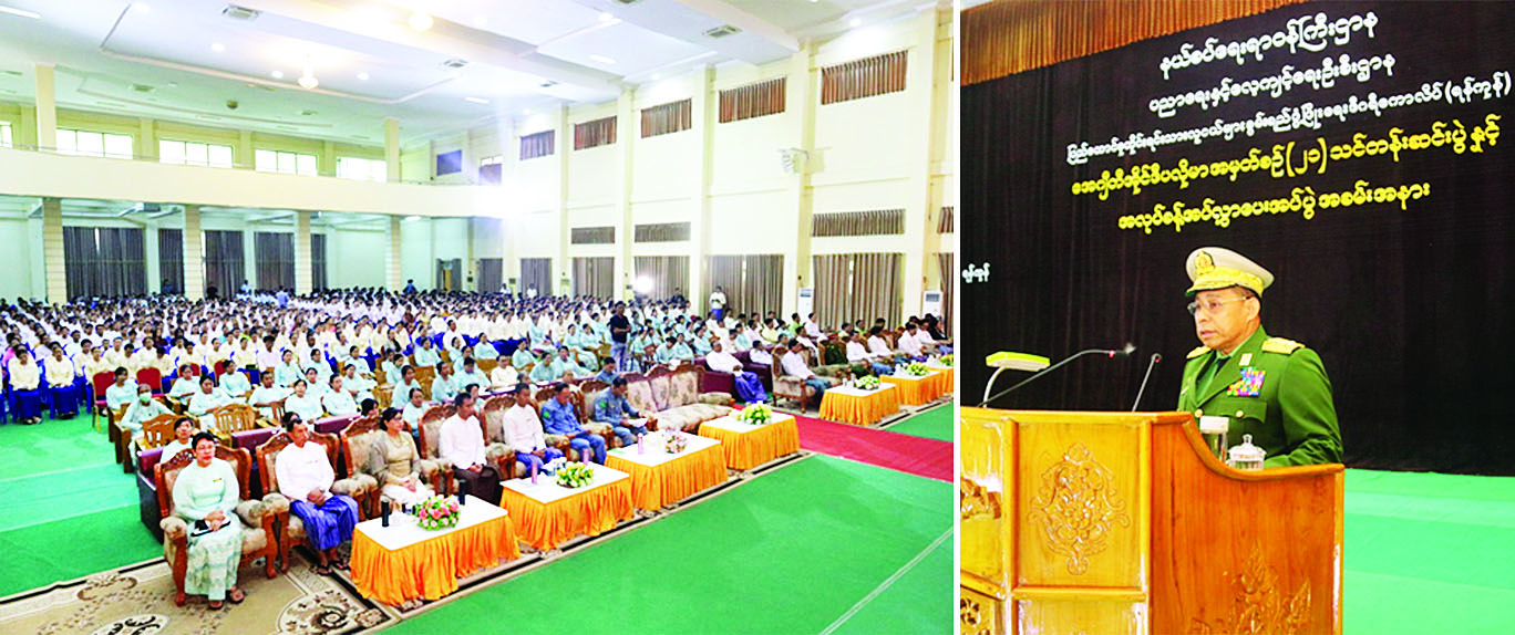 ဦးစွာ ပြည်ထောင်စုဝန်ကြီးက နယ်စပ်ဒေသများရှိ တိုင်းရင်းသားလူငယ်များကို ၎င်းတို့၏ နယ်စပ်ဒေသများ၏ ဖွံ့ဖြိုးရေးနှင့် လူမှုစီးပွားဘဝဖွံ့ဖြိုးတိုးတက်ရေးလုပ်ငန်းများကို နိုင်ငံ့ဝန်ထမ်းကောင်းများအဖြစ် ထိထိရောက်ရောက် ပါဝင်ဆောင်ရွက်နိုင်ရန်အတွက် ပြည်ထောင်စုတိုင်းရင်း သားလူငယ်များစွမ်းရည်ဖွံ့ဖြိုးရေး ဒီဂရီကောလိပ် (ရန်ကုန်၊ စစ်ကိုင်း) တို့ကို တည်ထောင်ဖွင့်လှစ်ပြုစုပျိုးထောင် လေ့ကျင့်သင်ကြားပေးလျက်ရှိကြောင်း၊ ပြည်ထောင်စုတိုင်းရင်းသားလူငယ်များ စွမ်းရည်ဖွံ့ဖြိုးရေးဒီဂရီကောလိပ်(ရန်ကုန်)ကို စတင်ဖွင့်လှစ်သည့်အချိန်မှ ယနေ့အချိန်ထိ ဝိဇ္ဇာဘွဲ့ ၆၈၅ ဦး၊ သိပ္ပံဘွဲ့ ၁၄၆၇ ဦး၊ A.G.T.I ဒီပလိုမာ ၁၀၁၄ ဦး စုစုပေါင်း ၃၁၆၆ ဦး ပြုစုပျိုးထောင်မွေးထုတ်ပေးနိုင်ခဲ့ပြီး ၎င်းတို့အနက်မှ သက်ဆိုင်ရာဝန်ကြီးဌာနများမှ အားပေးထောက်ပံ့ လေ့ကျင့်သင်ကြားပေးမှု၊ ကျောင်းသား ကျောင်းသူများ၏ စဉ်ဆက်မပြတ် ကြိုးစားလေ့လာမှုများကြောင့် ယခုအခါ မဟာဝိဇ္ဇာဘွဲ့ ၇၁ ဦး၊ မဟာသိပ္ပံဘွဲ့ ၁၄၆ ဦး၊ M.Res ဘွဲ့ ၅၅ ဦး၊ Ph.D ဘွဲ့ ၁၅ ဦး၊ B.E ဘွဲ့ ၃၀၁ ဦး၊ M.E ဘွဲ့ ၁၅ ဦး၊ B.Tech ၄၅၂ ဦး အောင်မြင်မှုရရှိခဲ့သဖြင့် အားရကျေနပ်ဖွယ်ဖြစ်ကြောင်း၊ ကျောင်းဆင်း ကျောင်းသား ကျောင်းသူများအနေဖြင့် အတုယူကြိုးစား အားထုတ်သွားကြရန်လိုကြောင်း၊ မိမိတို့လေ့လာတတ်မြောက်ထားသည့် အင်ဂျင်နီယာပညာရပ်များကို အခြေခံပြီး လက်တွေ့မြေပြင်တွင်ကြုံတွေ့ရမည့် အခြေအနေများနှင့်ပေါင်းစပ်၍ နိုင်ငံတော်ဖွံ့ဖြိုးတိုးတက်ရေးလုပ်ငန်းတာဝန်များကို အမှားအနည်းဆုံးဖြင့် အောင်မြင်အောင် အစွမ်းကုန် ကြိုးစားဆောင်ရွက်သွားကြရန်၊ နိုင်ငံတော်စီမံအုပ်ချုပ်ရေးကောင်စီ၏ “ရှေ့သို့လှမ်းချီ ပန်းတိုင်ဆီ (Keep Moving Forward To Achieve Our Goal)’’ ဆိုသည့် ဆောင်ပုဒ်အတိုင်း ဒီမိုကရေစီနှင့် ဖက်ဒရယ်စနစ်ကို အခြေခံသည့် ပြည်ထောင်စုတည်ဆောက်ရာ၌ တက်ညီလက်ညီပူးပေါင်းပါဝင် ကြိုးပမ်းဆောင်ရွက်သွားကြရန်၊ စစ်မှန်သည့် မျိုးချစ်စိတ်ဓာတ်ဖြစ်သည့် ပြည်ထောင်စုစိတ်ဓာတ်ကိုဆုပ်ကိုင်ပြီး နယ်စပ်ဒေသမှ တိုင်းရင်းသားလူမျိုးများ၏ ဘက်စုံဖွံ့ဖြိုးတိုးတက်ရေးလုပ်ငန်းများကို ဦးဆောင်လမ်းပြနိုင်မည့် ခေါင်းဆောင်ကောင်းများ၊ နိုင်ငံတော်မှ အားကိုးအားထားပြုရမည့် သားကောင်းသမီးမွန်များဖြစ်အောင် ကျင့်ကြံနေထိုင်လုပ်ကိုင်ဆောင်ရွက်သွားကြရန် တိုက်တွန်းမှာကြားပြီး အင်ဂျင်နီယာဘာသာရပ် ထူးချွန်ဆုရရှိသူ ကျောင်းသူတစ်ဦးကို ထူးချွန်ဆုပေးအပ်ချီးမြှင့်သည်။