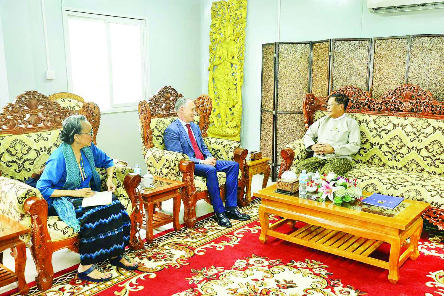 ဒုတိယဝန်ကြီးချုပ်နှင့် ပြည်ထောင်စုဝန်ကြီး ဦးသန်းဆွေ မြန်မာနိုင်ငံဆိုင်ရာ ကုလသမဂ္ဂယာယီဌာနေညှိနှိုင်းရေးမှူး/ လူသားချင်းစာနာထောက်ထားမှုဆိုင်ရာ ယာယီညှိနှိုင်းရေးမှူးနှင့် ကုလသမဂ္ဂကလေးများရန်ပုံငွေအဖွဲ့ (UNICEF) ၏ မြန်မာနိုင်ငံဆိုင်ရာ ကိုယ်စားလှယ်ဖြစ်သူ Mr. Marcoluigi Corsi အား လက်ခံတွေ့ဆုံ