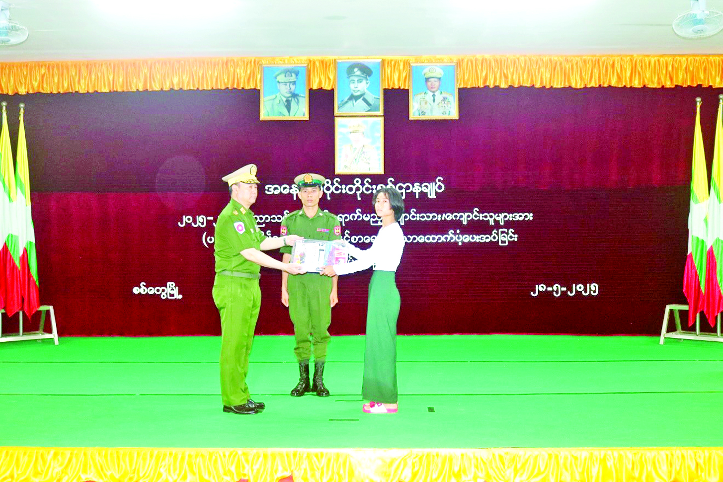 ၂၀၂၅-၂၀၂၆ ပညာသင်နှစ် အခြေခံပညာကျောင်းများတွင် တက်ရောက်ပညာသင်ကြားကြမည့် အနောက်ပိုင်းတိုင်းစစ်ဌာနချုပ်ရှိ တပ်မတော်သားမိသားစုဝင် ကျောင်းသား ကျောင်းသူများအား ကျောင်းဝတ်စုံနှင့် စာရေးကိရိယာများ ပထမအကြိမ် ပေးအပ်ခြင်းကို ယနေ့နံနက်ပိုင်းတွင် စစ်တွေတပ်နယ်ခန်းမ၌ ပြုလုပ်ရာ တိုင်းမှူး ဗိုလ်ချုပ် ကျော်စွာဦးနှင့် အရာရှိ၊ စစ်သည်၊ မိသားစုများ၊ ကျောင်းသား ကျောင်းသူများ တက်ရောက်ကြသည်။
