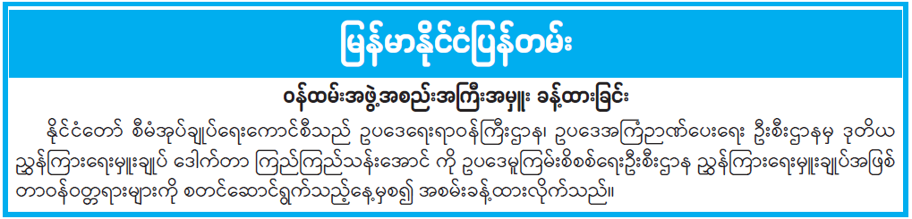 ဦးစီးဌာနနှင့် လုပ်ငန်းများ၏ ကြေညာချက်များ