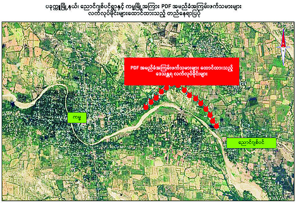 ပခုက္ကူမြို့နယ်အတွင်း အများပြည်သူ သွားလာအသုံးပြုနေသည့် လမ်းများပေါ်၌ PDF အမည်ခံအကြမ်းဖက်သမားများ ထောင်ထားသည့် လက်လုပ်မိုင်းများ ထပ်မံတွေ့ရှိသဖြင့် ဖယ်ရှားရှင်းလင်း