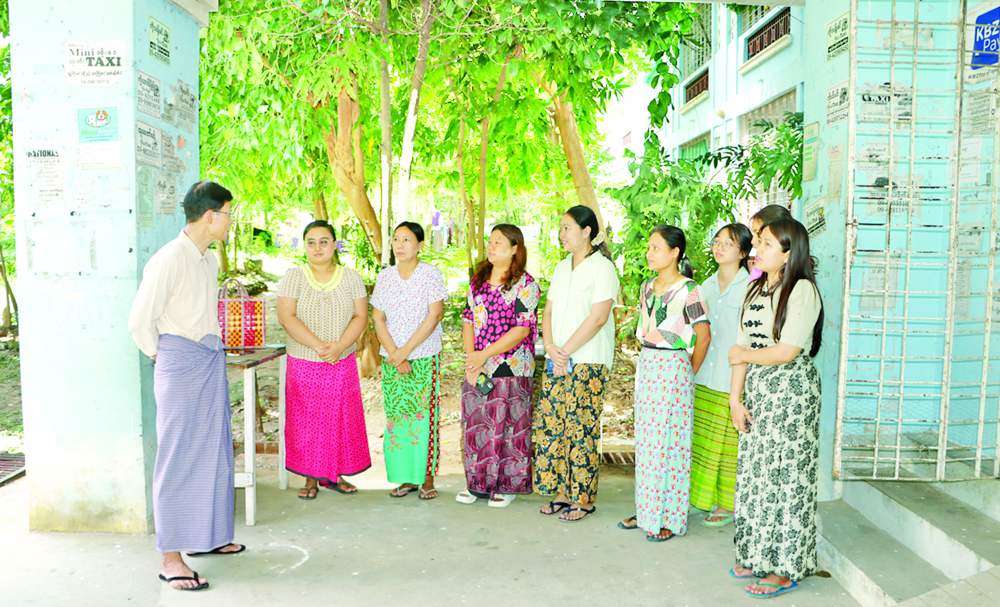ဦးစွာ ကျေးလက်ဒေသဖွံ့ဖြိုးတိုးတက်ရေးဦးစီးဌာန ဝန်ထမ်းများ နေထိုင်လျက်ရှိသည့် သဇင်(၁) အဆောင်(၆)သို့ သွားရောက်ပြီး နေထိုင်ရေးအဆင်ပြေမှုရှိ မရှိနှင့် လျှပ်စစ်မီး၊ သောက်သုံးရေရရှိမှုတို့ကို စိစစ်မေးမြန်းပြီးလိုအပ်သည်များ မှာကြားကာ ဝန်ထမ်းများအတွက် စားသောက်ဖွယ်ရာများ ပေးအပ်သည်။