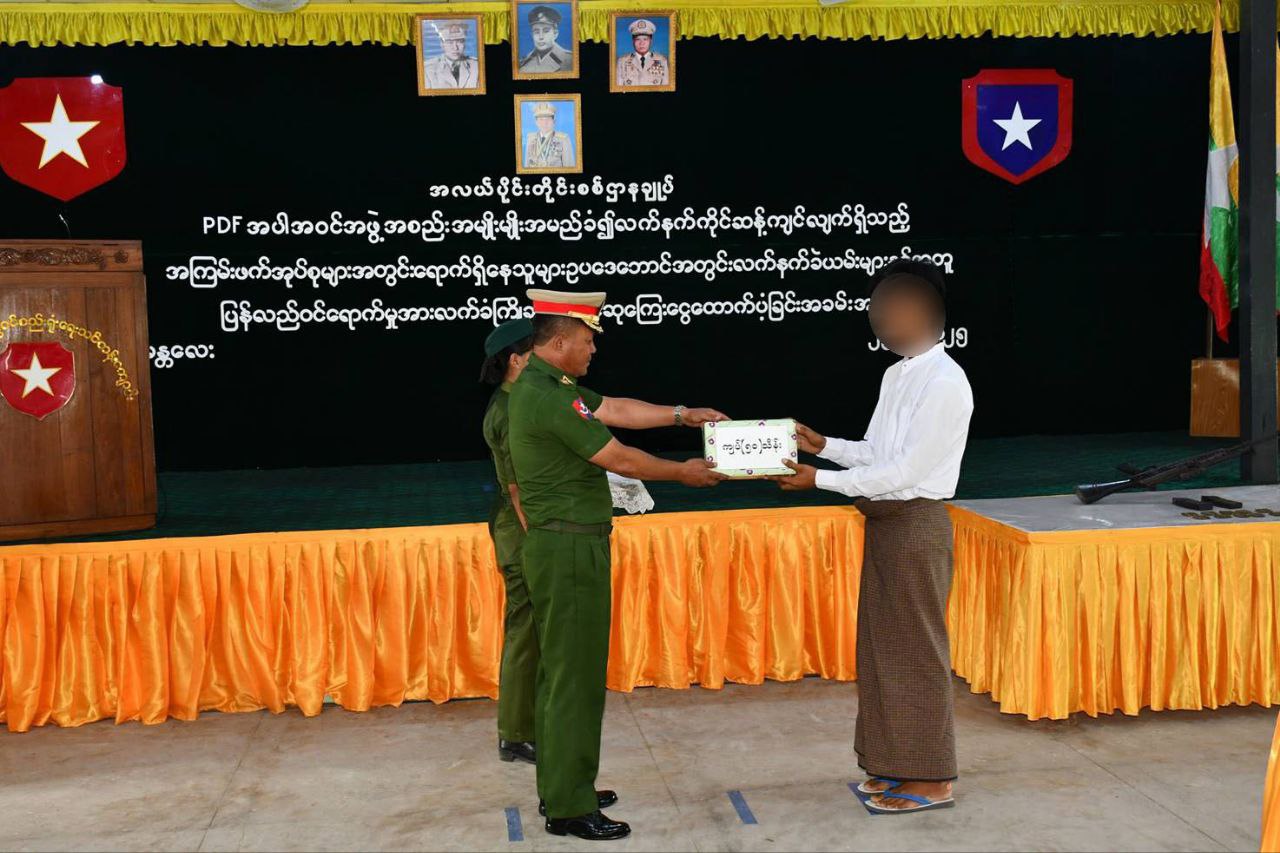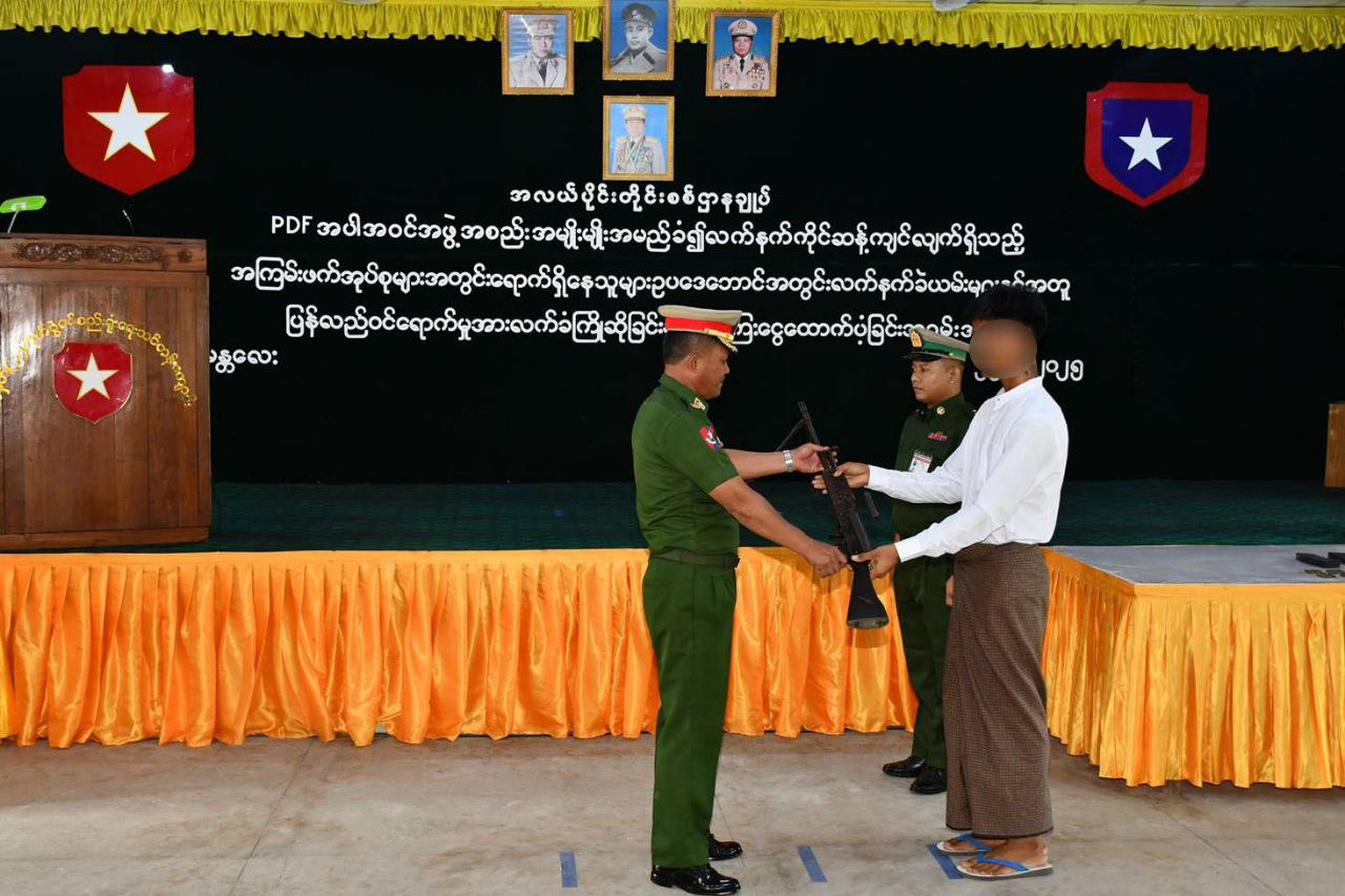 PDF အမည်ခံအဖွဲ့ဝင် ၁၉ ဦး လက်နက်/ခဲယမ်းများနှင့်အတူ ဥပဒေဘောင်အတွင်း ပြန်လည်ဝင်ရောက်၊ ဆုကြေးငွေ၊ ထောက်ပံ့ငွေနှင့် ထောက်ပံ့ပစ္စည်းများပေးအပ်