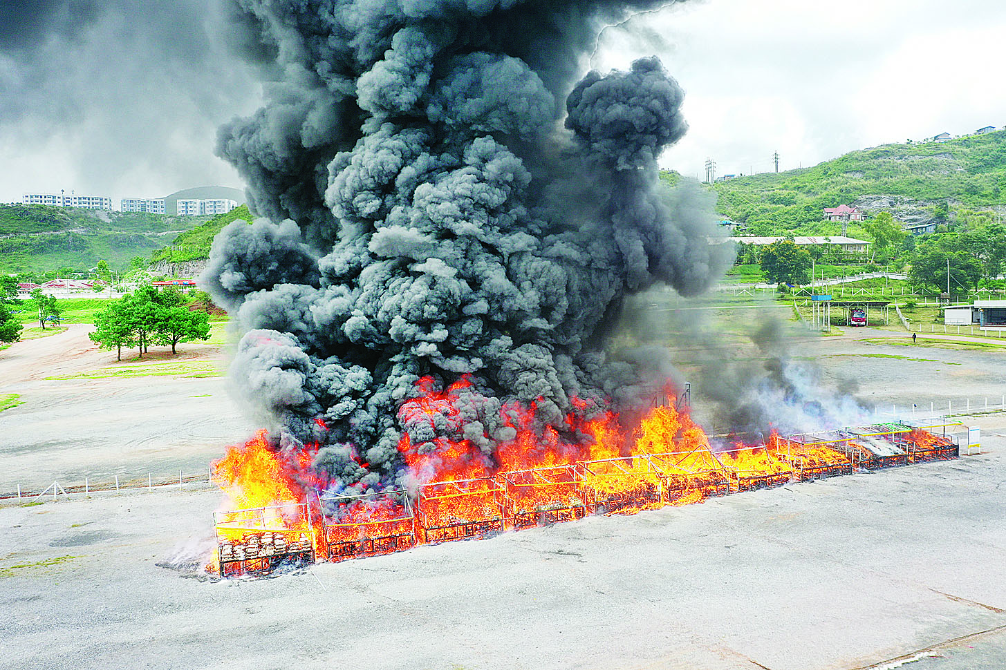 အဆိုပါ မီးရှို့ဖျက်ဆီးပွဲတွင် ရှမ်းပြည်နယ်၊ ကယားပြည်နယ်တို့မှ ဖမ်းဆီးရမိသည့် ဘိန်း ၉၁၉ ကီလိုကျော်၊ ဘိန်းဖြူ ၄၆၁ ကီလိုကျော်၊ စိတ်ကြွရူးသွပ်ဆေးပြား ၉၂ သန်းကျော်၊ အိုက်စ် ၅၀၉၃ ကီလိုကျော်၊ စိတ်ပြောင်းဆေးဝါး (Happy Water) ၉၇ ကီလိုကျော်၊ ကက်တမင်း ၂၇၁၅ ကီလိုကျော်၊ ဆေးခြောက် ၅၉ ကီလိုကျော်အပါအဝင် မူးယစ်ဆေးဝါး ၁၉ မျိုးနှင့် ဓာတုပစ္စည်း ၁၂ မျိုး စုစုပေါင်းတန်ဖိုး မြန်မာငွေကျပ် ၃၅၃ ဘီလီယံကျော် (အမေ ရိကန်ဒေါ်လာ ၉၈ သန်းကျော်) ကို ဖျက်ဆီးခဲ့သည်။