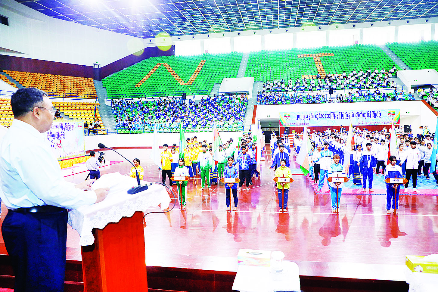 ဦးစွာ ဒုတိယဝန်ကြီးက အမှာစကားပြောကြားပြီး ၂၀၂၅ ခုနှစ် တိုင်းဒေသကြီးနှင့် ပြည်နယ်တိုက်ကွမ်ဒိုပြိုင်ပွဲကို ဖွင့်လှစ်ပေးကာ ပြိုင်ပွဲဝင်အားကစားသမားများက အားကစားသစ္စာအဓိဌာန် (၄) ချက် ရွတ်ဆိုကြသည်။