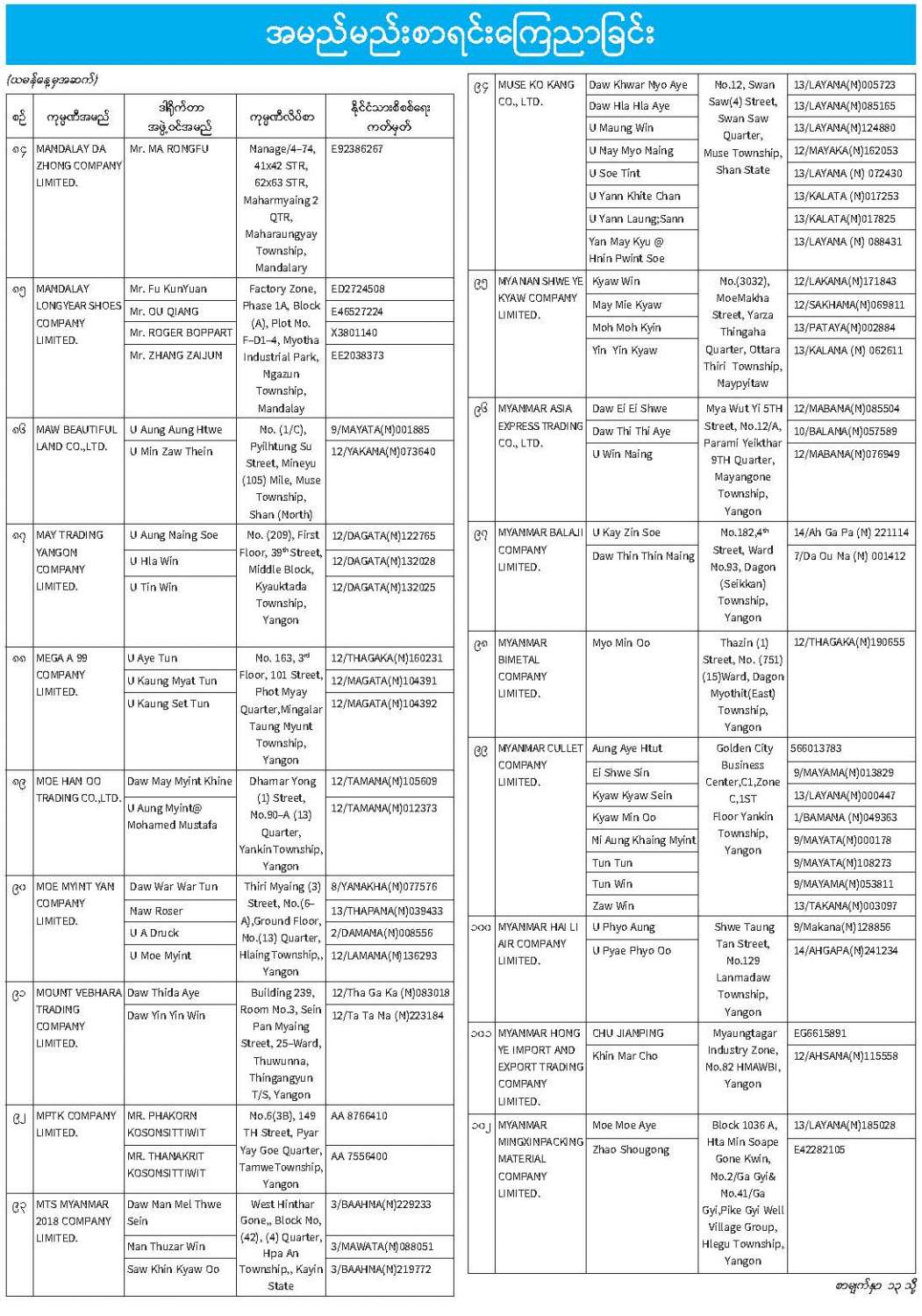 ဦးစီးဌာနနှင့် လုပ်ငန်းများ၏ ကြေညာချက်များ