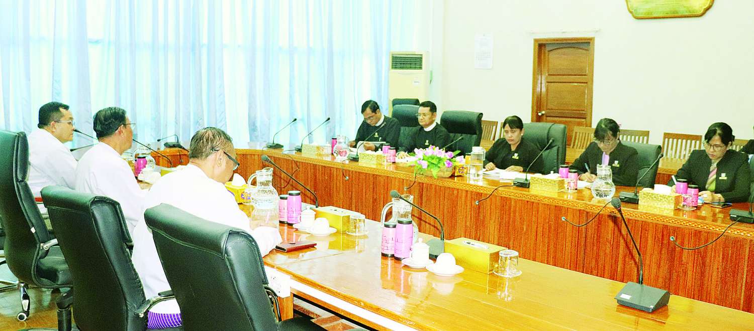 ပြည်ထောင်စုဝန်ကြီးနှင့် ပြည်ထောင်စုရှေ့နေချုပ် ဒေါက်တာသီတာဦးသည် မြန်မာနိုင်ငံအမျိုးသားလူ့အခွင့်အရေးကော်မရှင်ဥက္ကဋ္ဌ ဦးပေါ်လွင်စိန်နှင့် ယနေ့တွင် နေပြည်တော်ရှိ ဥပဒေရေးရာဝန်ကြီးဌာန အစည်းအဝေးခန်းမ၌ တွေ့ဆုံဆွေးနွေးသည်။