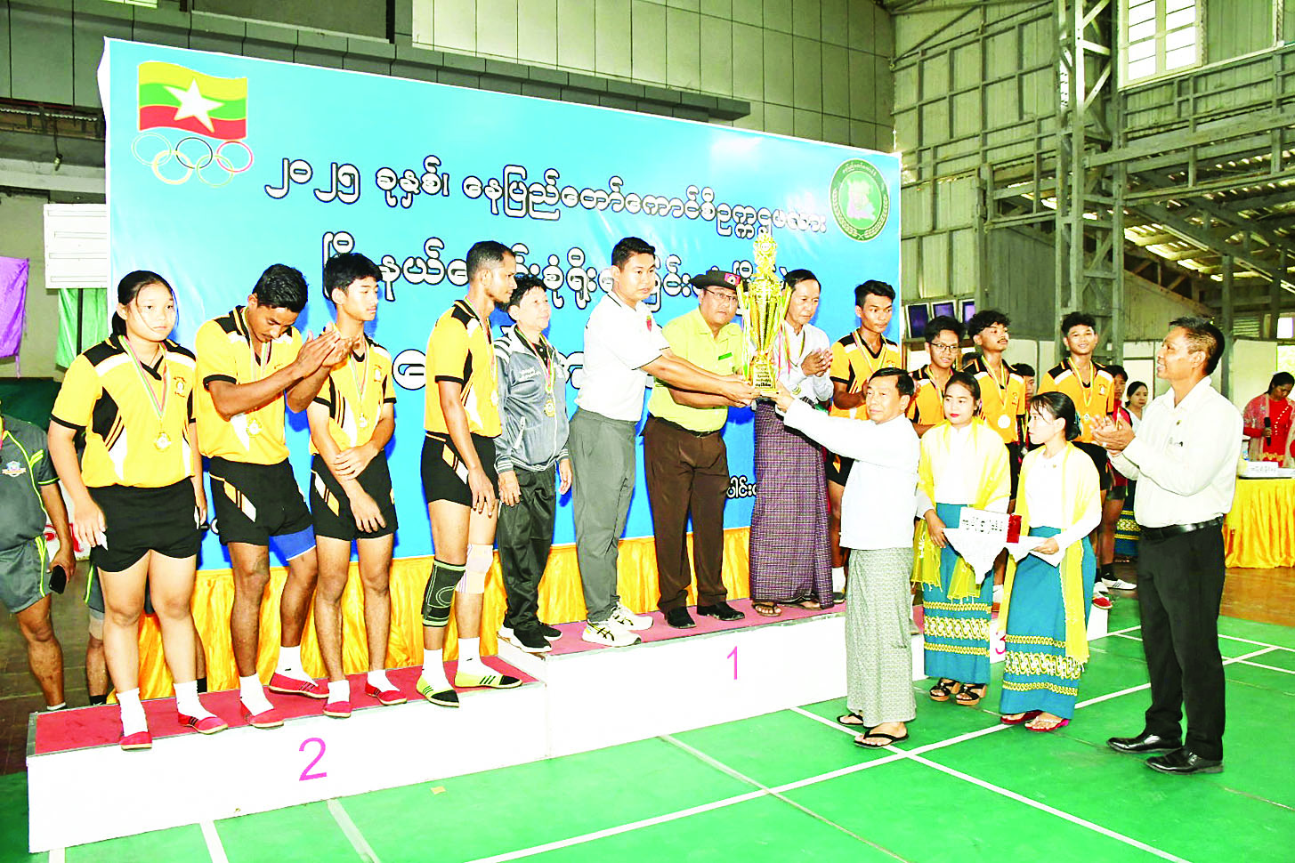 ဆက်လက်၍ ဆုပေးပွဲအခမ်းအနားကိုကျင်းပရာ ပြိုင်ပွဲတွင် တတိယဆု၊ ဒုတိယဆုနှင့် ပထမဆုရရှိသော မြို့နယ်အသင်းများအား တစ်ဦးချင်း ဆုတံဆိပ်နှင့် ငွေသားဆုများကို နေပြည်တော်ကောင်စီဝင်များက ပေးအပ်ချီးမြှင့်ကြပြီး ပထမဆုရရှိသော ပျဉ်းမနားမြို့နယ်အသင်းကို တံခွန်စိုက်ဆုဖလားကြီးနှင့် ငွေသားဆုကို နေပြည်တော်ကောင်စီဥက္ကဋ္ဌက ပေးအပ်ချီးမြှင့်သည်။