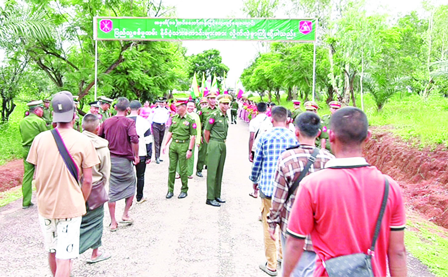 ရှမ်းပြည်နယ်အတွင်းရှိ ပြည်သူ့စစ်မှုထမ်းသင်တန်း အမှတ်စဉ် (၁၅) သို့ တက်ရောက်ကြမည့် နိုင်ငံ့သားကောင်းရတနာများကြိုဆိုပွဲကို ယနေ့နံနက်ပိုင်းတွင် ကျိုင်းတုံမြို့ရှိ နယ်မြေခံသင်တန်းကျောင်း၌ ပြုလုပ်ရာ တြိဂံဒေသတိုင်းစစ်ဌာနချုပ်တိုင်းမှူး ဗိုလ်ချုပ် စိုးလှိုင်နှင့် တာဝန်ရှိသူများ၊ အရာရှိ၊ စစ်သည်၊ မိသားစုဝင်များ၊ မြန်မာနိုင်ငံရဲတပ်ဖွဲ့ဝင်များ၊ စစ်မှုထမ်းဟောင်းအဖွဲ့ဝင်များ၊ ဌာနဆိုင်ရာတာဝန်ရှိသူများ၊ တိုင်းရင်းသားယဉ်ကျေးမှုအဖွဲ့များနှင့် ဒေသခံတိုင်းရင်းသားပြည်သူများ တက်ရောက်ကြသည်။