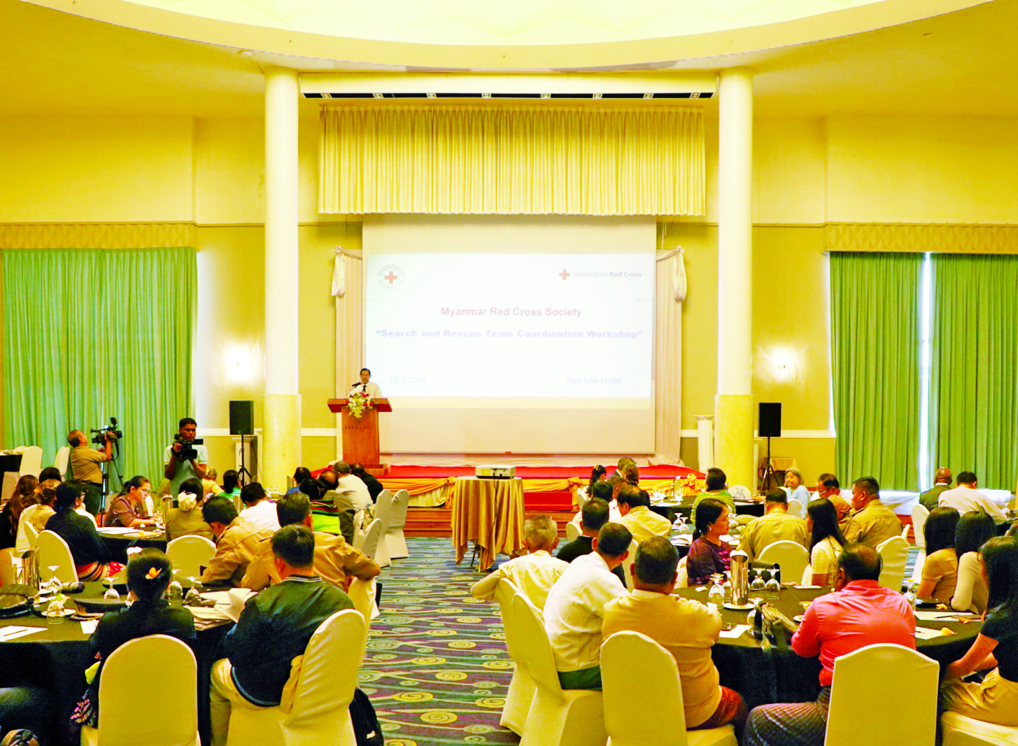 မြန်မာနိုင်ငံကြက်ခြေနီအသင်းနှင့် နော်ဝေနိုင်ငံကြက်ခြေနီအသင်းတို့ ပူးပေါင်းပြုလုပ်သည့် ရှာဖွေရေးနှင့် ကယ်ဆယ်ရေးအဖွဲ့ ဖွဲ့စည်းခြင်းဆိုင်ရာ အလုပ်ရုံဆွေးနွေးပွဲ ဖွင့်ပွဲအခမ်းအနားကို ယနေ့တွင် ရန်ကုန်မြို့ အင်းလျားလိတ်ဟိုတယ်၌ ကျင်းပသည်။