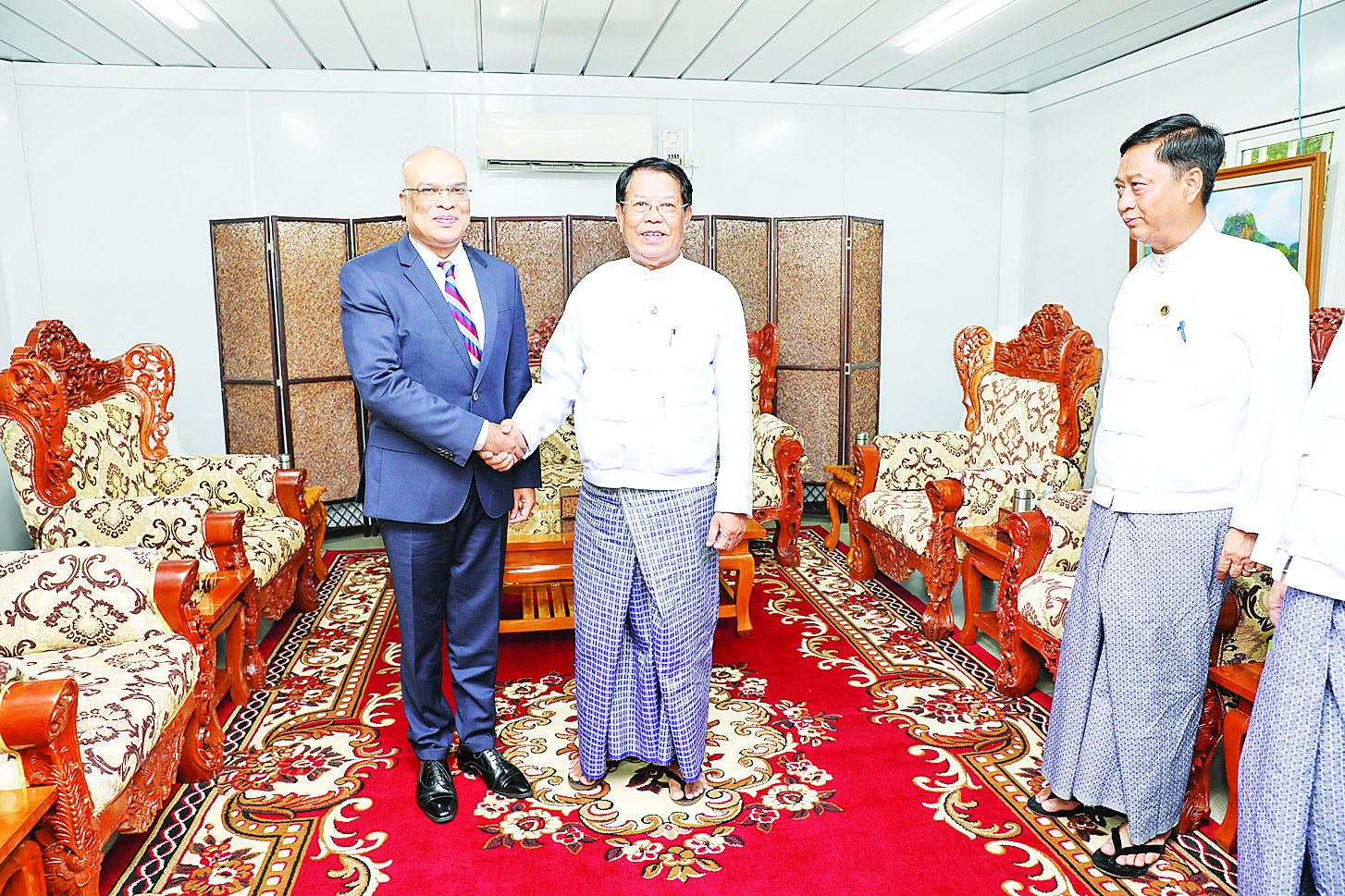ဒုတိယဝန်ကြီးချုပ်နှင့် နိုင်ငံခြားရေးဝန်ကြီးဌာန ပြည်ထောင်စုဝန်ကြီး ဦးသန်းဆွေသည် ပြည်ထောင်စုသမ္မတ မြန်မာနိုင်ငံတော်ဆိုင်ရာ ဘင်္ဂလားဒေ့ရှ်နိုင်ငံ သံအမတ်ကြီး ဒေါက်တာ မိုဟာမက် မွန် (န) ဝါဟူစိန်အား ယနေ့ညနေ ၅ နာရီတွင် နေပြည်တော်ရှိ နိုင်ငံခြားရေးဝန်ကြီးဌာန၌ လက်ခံတွေ့ဆုံသည်။