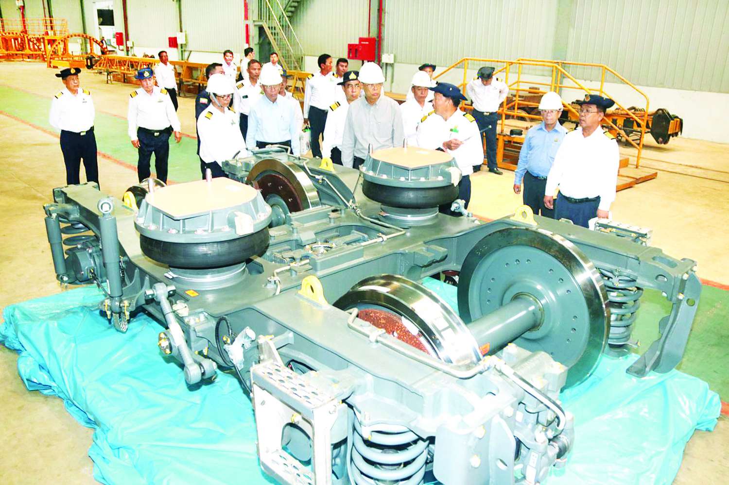 ယင်းနောက် စက်ရုံအတွင်း ကုန်သေတ္တာတင်တွဲများ တည်ဆောက်နေမှု၊ DEMU ရထားတွဲတစ်တွဲ စမ်းသပ်တည်ဆောက်နေမှု၊ လူစီးတွဲနှင့် ကုန်တွဲများ အကြီးတန်းပြင်ဆင်မှု၊ ဘီးဘိုဂီအသစ်များ ထုတ်လုပ်မှုအခြေအနေများကို ကြည့်ရှုစစ်ဆေးပြီး တွဲများ၏ သက်တမ်းအလိုက် ကြံ့ခိုင်မှုပိုမိုကောင်းမွန်စေရေး၊ ပြန်လည်အသုံးမပြုနိုင်တော့သည့် တွဲဘီးဟောင်းများစီမံခန့်ခွဲရေး လိုအပ်ချက်များကို မှာကြားသည်။