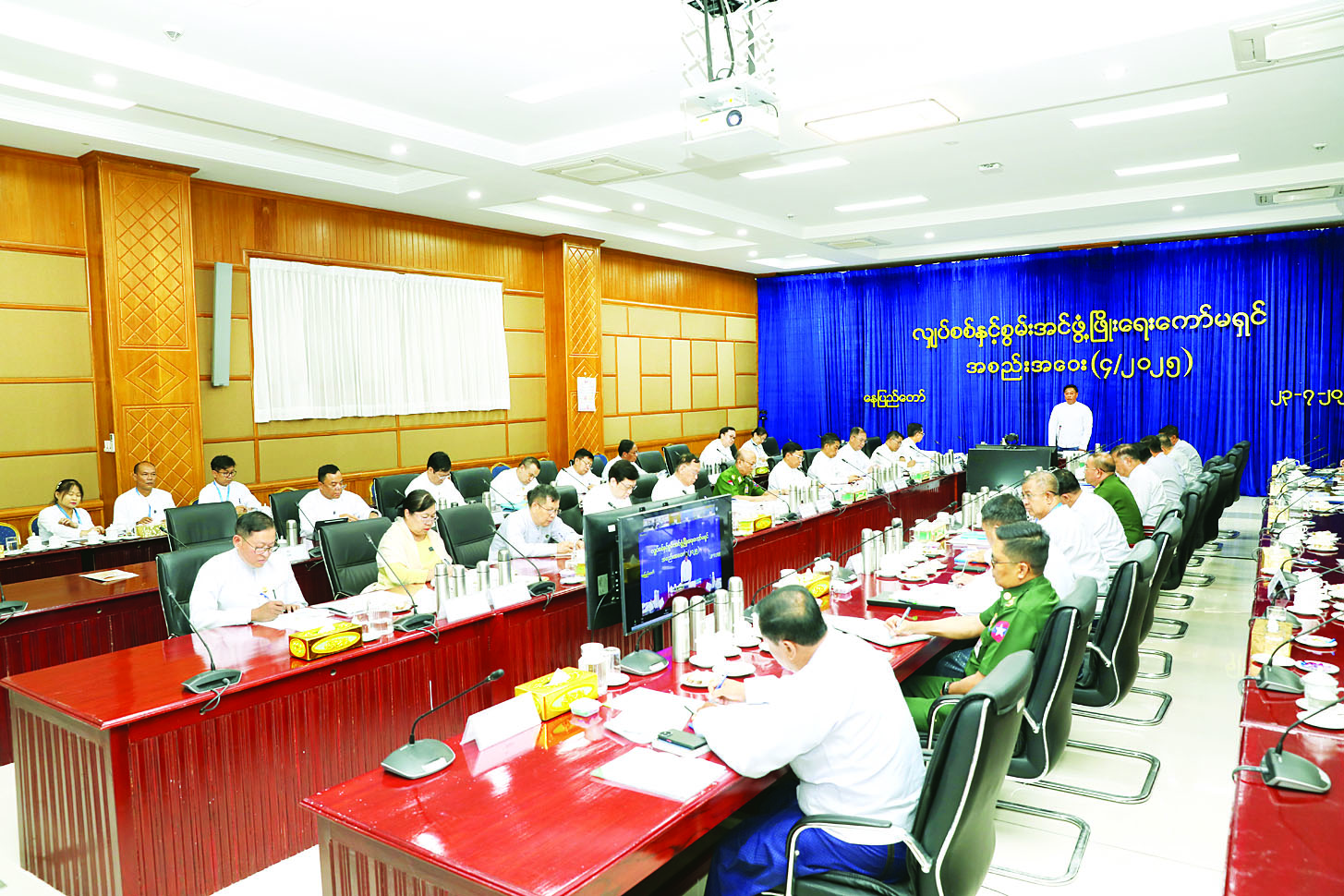 လျှပ်စစ်နှင့်စွမ်းအင်ဖွံ့ဖြိုးရေးကော်မရှင်၏ (၄/၂၀၂၅) အစည်းအဝေးကို ယနေ့မွန်းလွဲပိုင်းတွင် နေပြည်တော်ရှိ နိုင်ငံတော်စီမံအုပ်ချုပ်ရေးကောင်စီရုံး အစည်းအဝေးခန်းမ၌ ကျင်းပရာ လျှပ်စစ်နှင့်စွမ်းအင်ဖွံ့ဖြိုးရေးကော်မရှင်ဥက္ကဋ္ဌ နိုင်ငံတော်စီမံအုပ်ချုပ်ရေးကောင်စီအဖွဲ့ဝင် ဒုတိယဝန်ကြီးချုပ်နှင့် နိုင်ငံတော်ဝန်ကြီးချုပ်ရုံး ပြည်ထောင်စုဝန်ကြီး ဗိုလ်ချုပ်ကြီး တင်အောင်စန်း၊ ကော်မရှင်ဒုတိယဥက္ကဋ္ဌများနှင့် ကော်မရှင်အဖွဲ့ဝင် ပြည်ထောင်စုဝန်ကြီးများ၊ နေပြည်တော်ကောင်စီဥက္ကဋ္ဌနှင့် တာဝန်ရှိသူများ တက်ရောက်ကြပြီး တိုင်းဒေသကြီး၊ ပြည်နယ်ဝန်ကြီးချုပ်များက အွန်လိုင်းမှ တက်ရောက်ကြသည်။