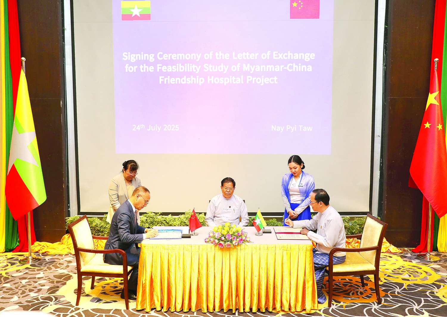 အစည်းအဝေးအပြီးတွင် ရင်းနှီးမြှုပ်နှံမှုနှင့် နိုင်ငံခြားစီးပွားဆက်သွယ်ရေးဝန်ကြီးဌာန ပြည်ထောင်စုဝန်ကြီးနှင့် တရုတ်နိုင်ငံတကာဖွံ့ဖြိုးမှု ပူးပေါင်းဆောင်ရွက်ရေးအေဂျင်စီ ဥက္ကဋ္ဌတို့က လူ့စွမ်းအားအရင်းအမြစ် ဖွံ့ဖြိုးတိုးတက်ရေးဆိုင်ရာ နားလည်မှုစာချွန်လွှာ လက်မှတ်ရေးထိုးခြင်းနှင့် ကျန်းမာရေးဝန်ကြီးဌာန ပြည်ထောင်စုဝန်ကြီးနှင့် တရုတ်နိုင်ငံတကာ ဖွံ့ဖြိုးမှုပူးပေါင်းဆောင်ရွက်ရေးအေဂျင်စီဥက္ကဋ္ဌတို့က တရုတ်-မြန်မာချစ်ကြည်ရေး အဆင့်မြင့်အထူးကုဆေးရုံကြီးစီမံကိန်း အကောင်အထည်ဖော်ဆောင်ရွက်နိုင်ရေး ဖြစ်နိုင်ခြေလေ့လာ သုံးသပ်မှုအတွက် စာလွှာလက်မှတ်ရေးထိုးလဲလှယ်ခြင်းတို့ကို ဆောင်ရွက်ခဲ့ကြကြောင်း သတင်းရရှိသည်။
