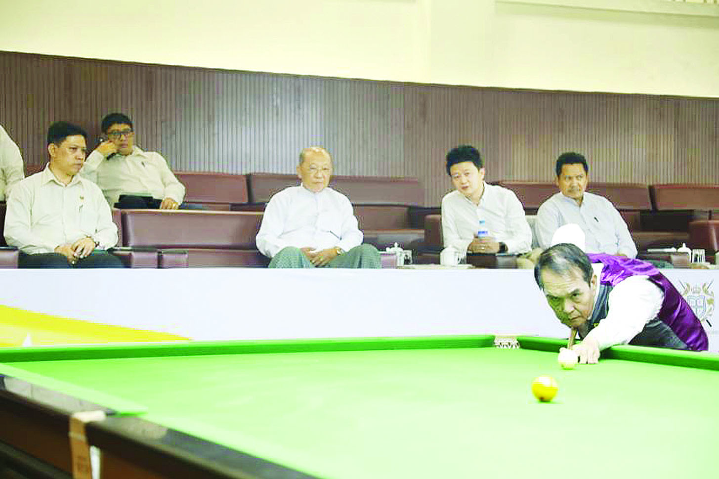 မွန်းလွဲပိုင်းတွင် ဝေဇယန္တာလမ်းရှိ အမျိုးသားအားကစားပြိုင်ပွဲရုံ(၁)သုဝဏ္ဏ ပတ္တမြားခန်းမ၌ မြန်မာနိုင်ငံပန်ကြပ်ဆီလပ်အဖွဲ့ချုပ်နှင့် မြန်မာနိုင်ငံ ဘိလိယက်နှင့်စနူကာအဖွဲ့ချုပ်မှ အားကစားသမားများ လေ့ကျင့်နေမှုကို ကြည့်ရှုစစ်ဆေးပြီး (၃၃)ကြိမ်မြောက် အရှေ့တောင်အာရှ အားကစားပြိုင်ပွဲသို့ စနစ်တကျပါဝင်ယှဉ်ပြိုင်နိုင်ရေးနှင့် အောင်မြင်မှု ဆုတံဆိပ်များရရှိရေးတို့နှင့်စပ်လျဉ်း၍ မှာကြားသည်။