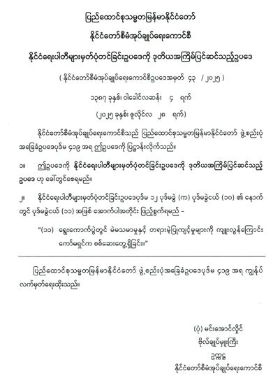 ဝန်ကြီးဌာန ကြေညာချက်များ
