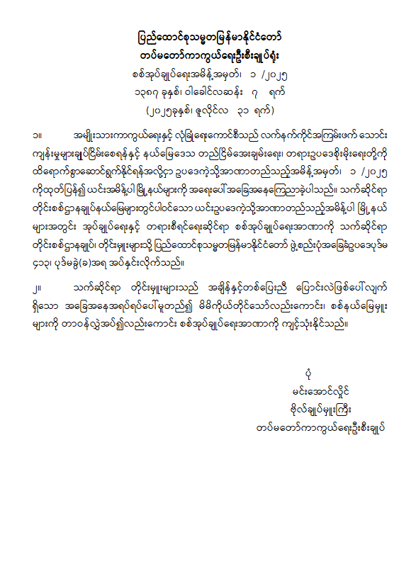 ဦးစီးဌာနနှင့် လုပ်ငန်းများ၏ ကြေညာချက်များ