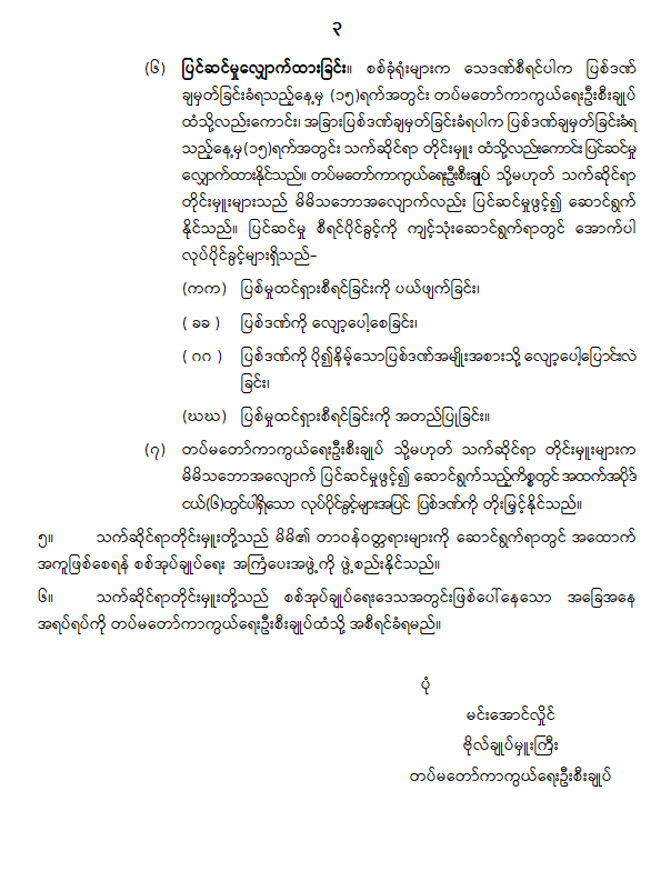 ဝန်ကြီးဌာန ကြေညာချက်များ