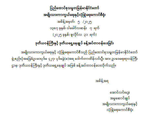 ဝန်ကြီးဌာန ကြေညာချက်များ