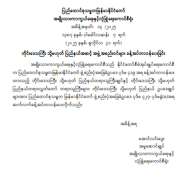 ဝန်ကြီးဌာန ကြေညာချက်များ