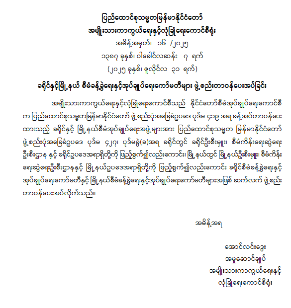 ဝန်ကြီးဌာန ကြေညာချက်များ