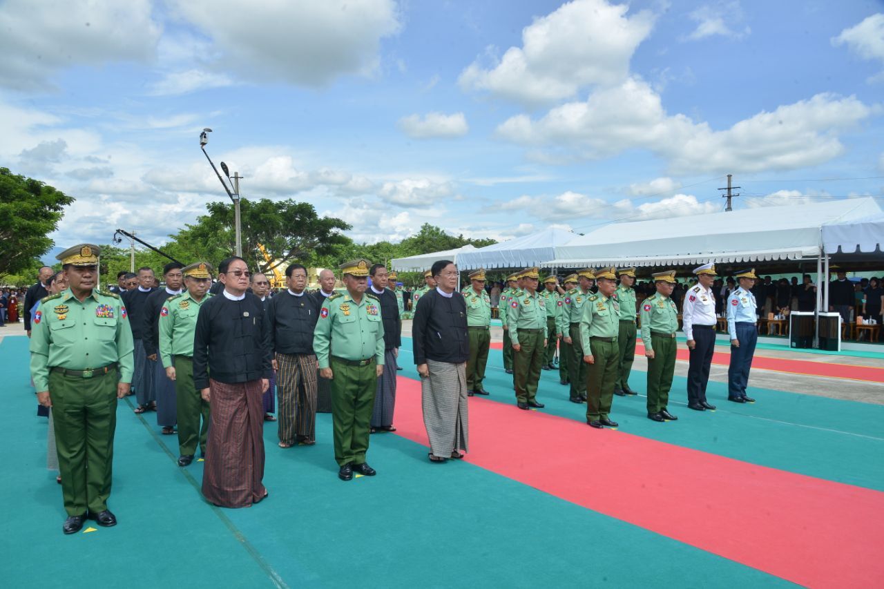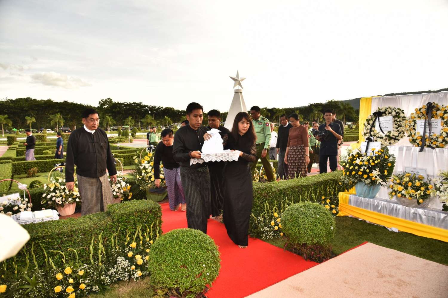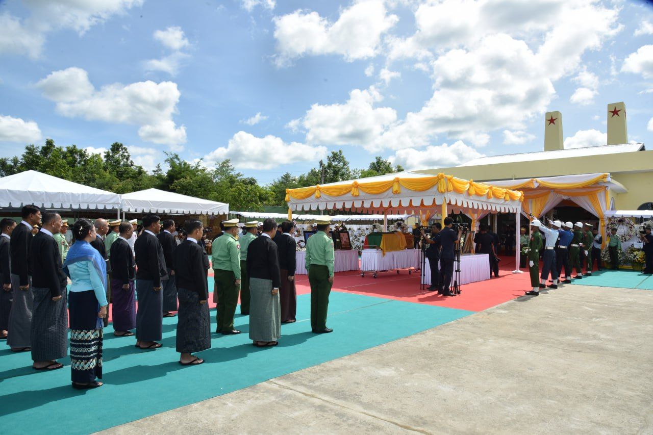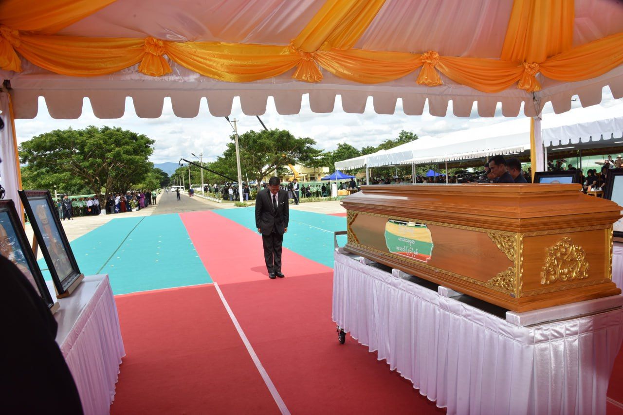 ယင်းနောက် နိုင်ငံတော်လုံခြုံရေးနှင့် အေးချမ်းသာယာရေးကော်မရှင်ဥက္ကဋ္ဌ၊ ကော်မရှင်ဒုတိယဥက္ကဋ္ဌနှင့် ပြည်ထောင်စုအဆင့်ပုဂ္ဂိုလ်များ၊ ကာကွယ်ရေးဦးစီးချုပ်ရုံးမှ အဆင့်မြင့်တပ်မတော်အရာရှိကြီးများက နေရာယူကြပြီး တပ်မတော်ဂုဏ်ပြု သေနတ်ပစ်အဖွဲ့က ဂုဏ်ပြုစစ်ရေးပြအစီအစဉ်အတိုင်းဆောင်ရွက်ကာ သေနတ်မြေစိုက်ဦးခိုက်အလေးပြုကြပြီး သေနတ်မြှောက်အလေးပြုကြသည်။