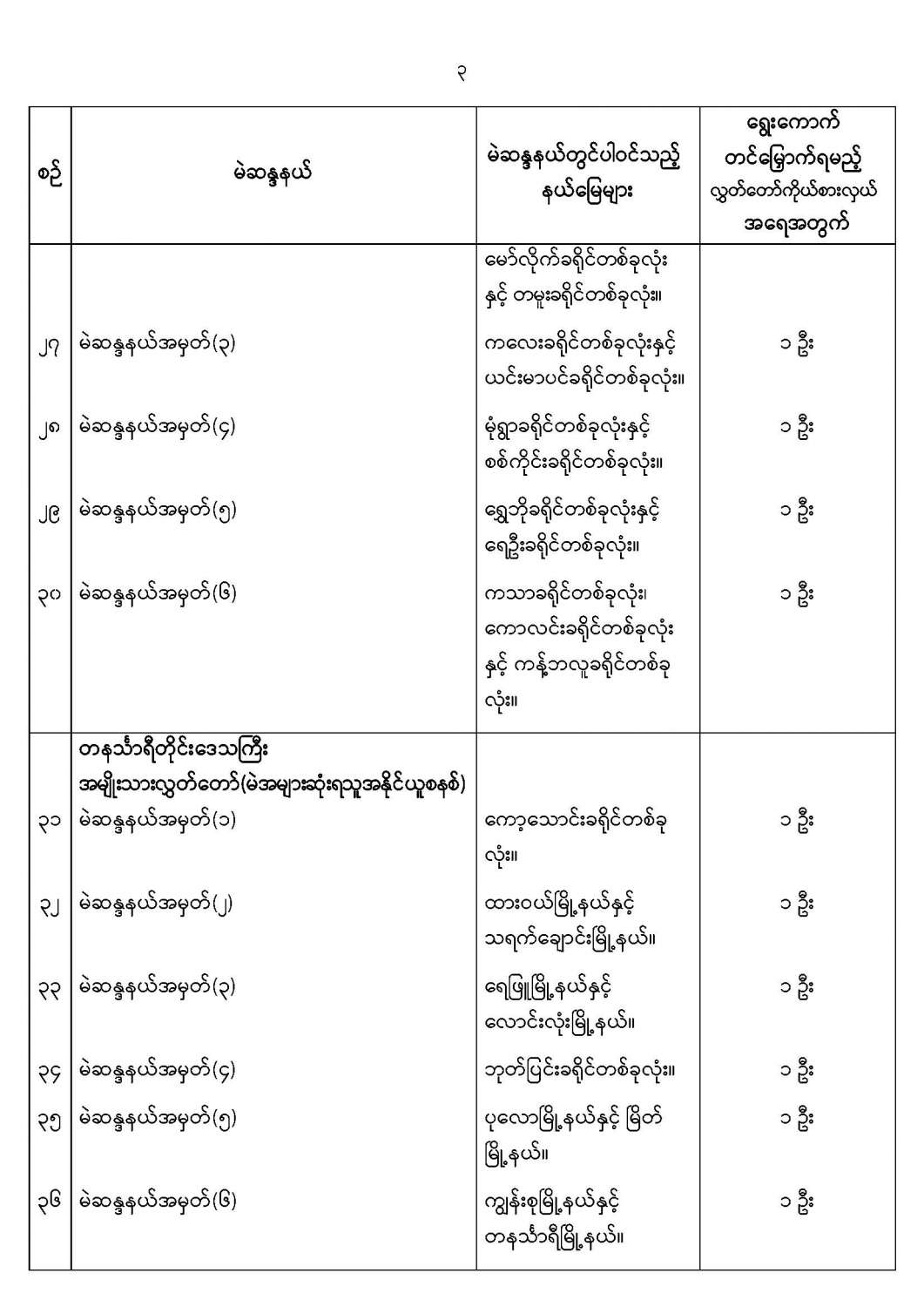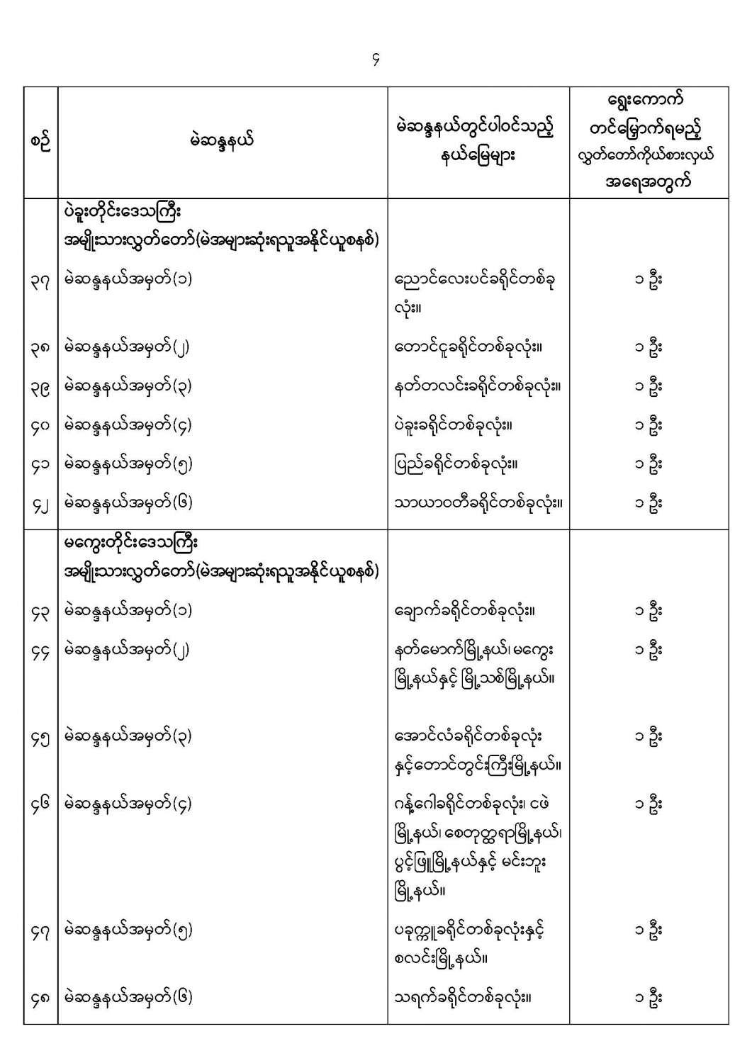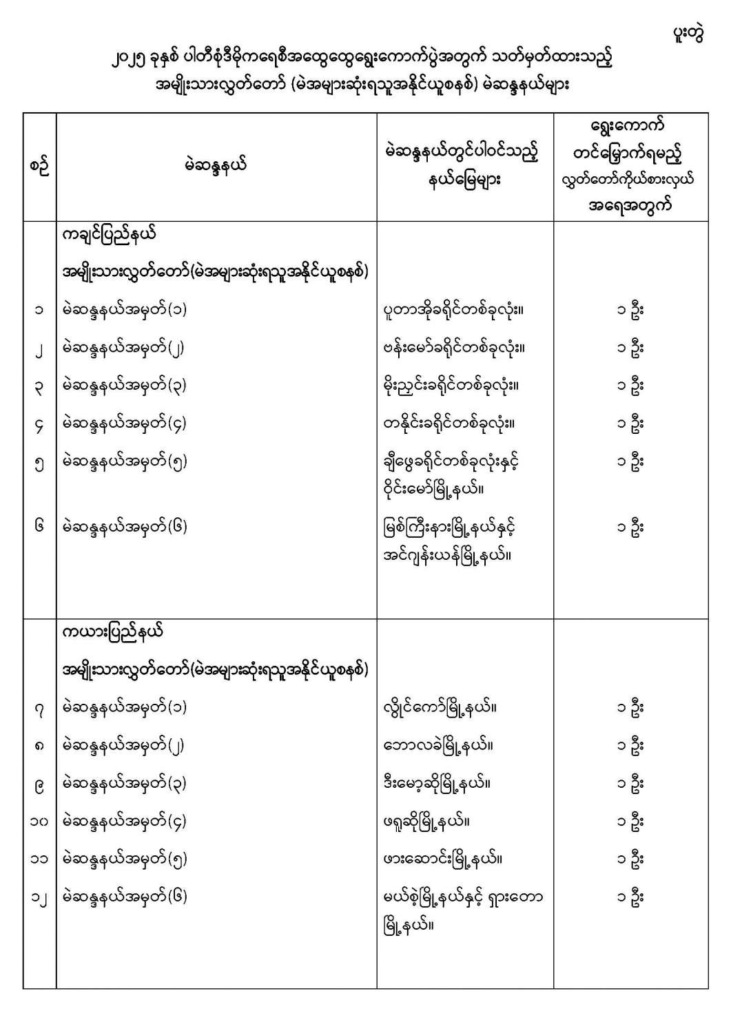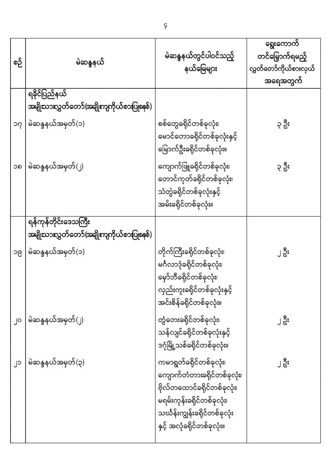 အမျိုးသားလွှတ်တော်မဲဆန္ဒနယ်များ သတ်မှတ်ကြေညာခြင်း