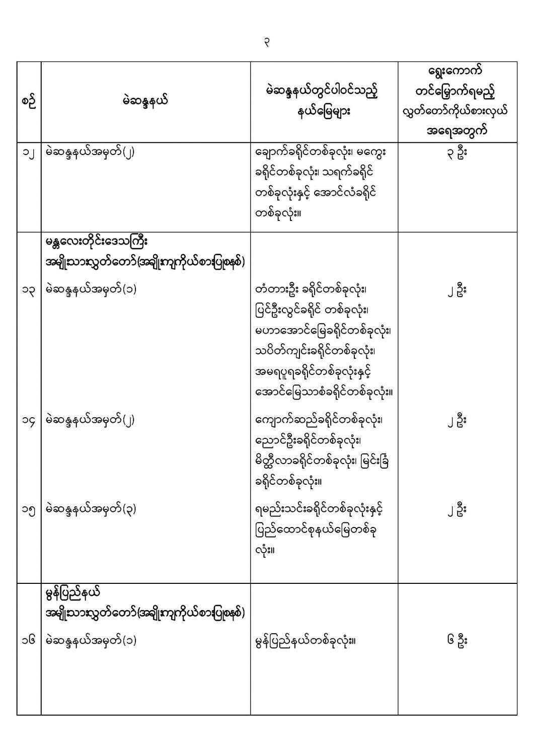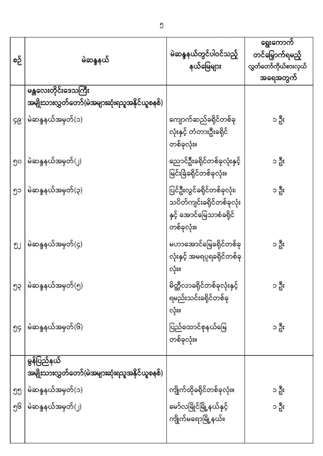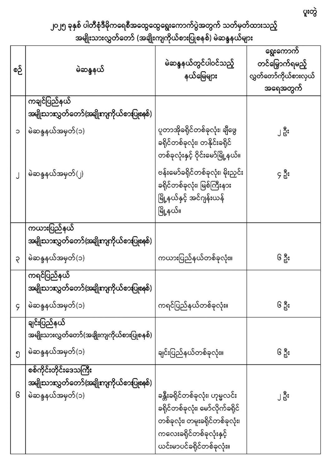 ဝန်ကြီးဌာန ကြေညာချက်များ