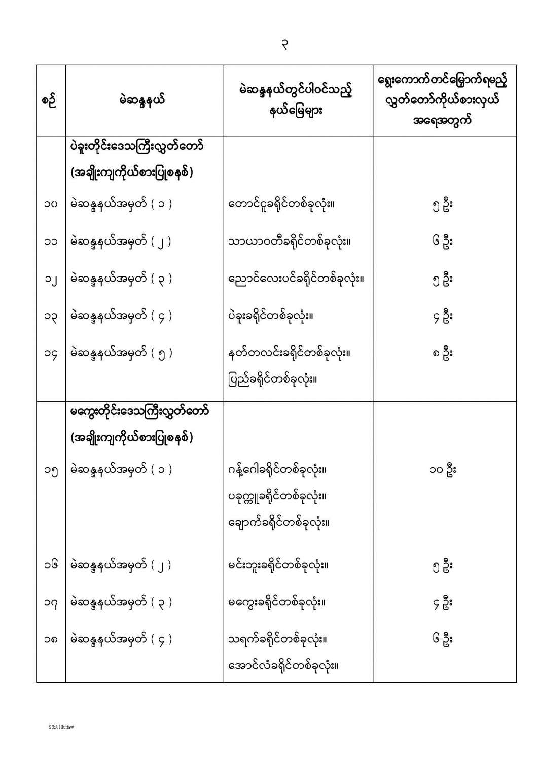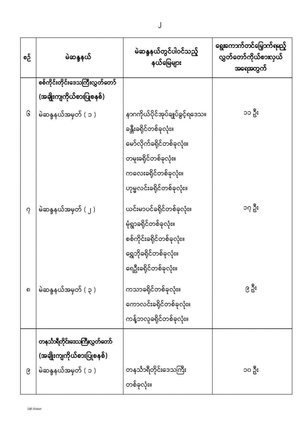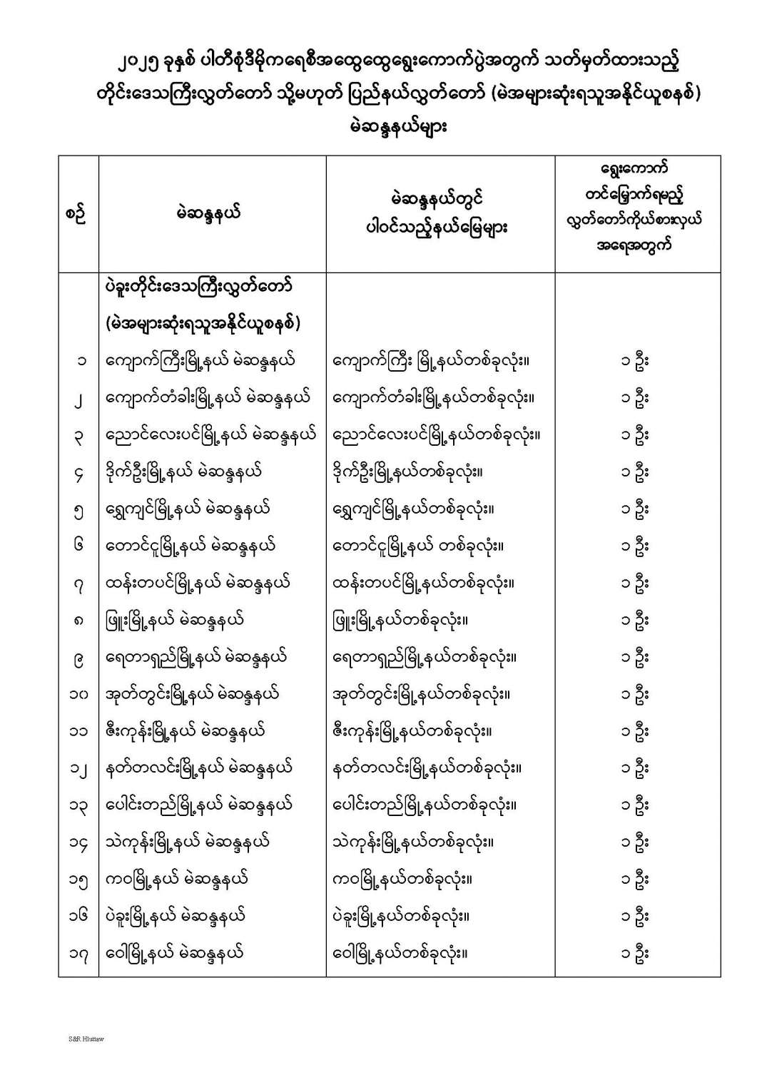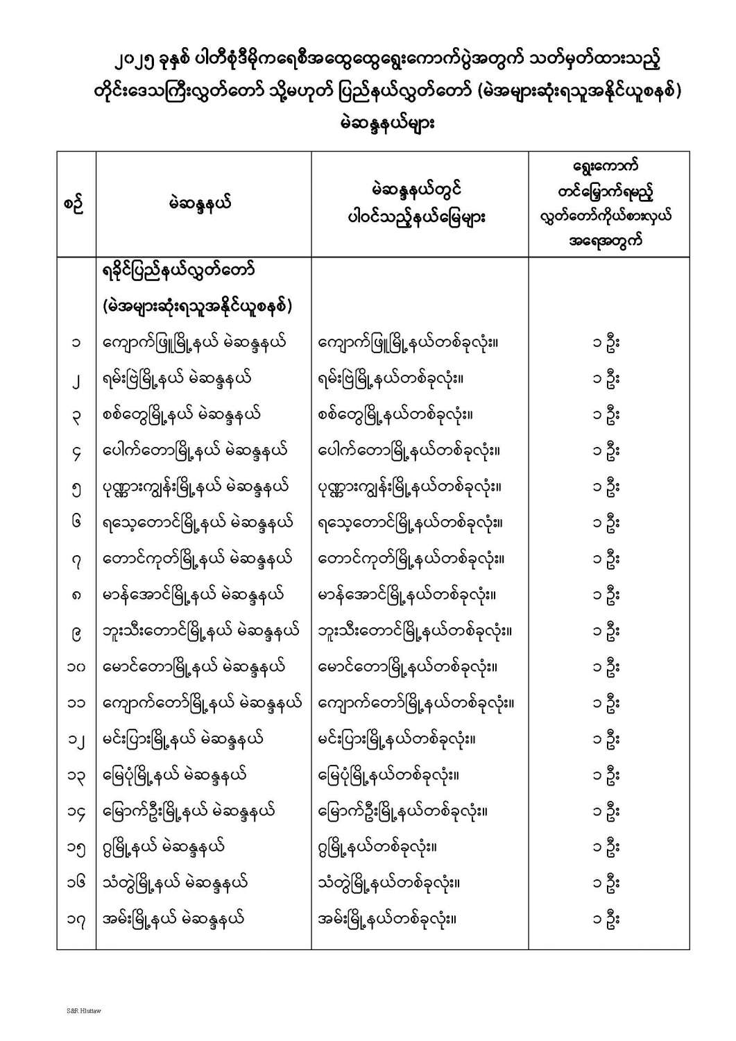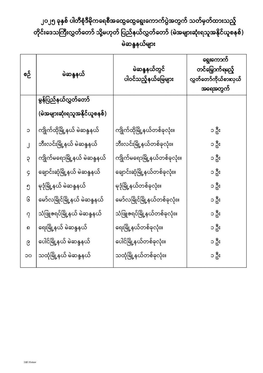 တိုင်းဒေသကြီးလွှတ်တော် သို့မဟုတ် ပြည်နယ်လွှတ်တော် မဲဆန္ဒနယ်များ သတ်မှတ်ကြေညာခြင်း
