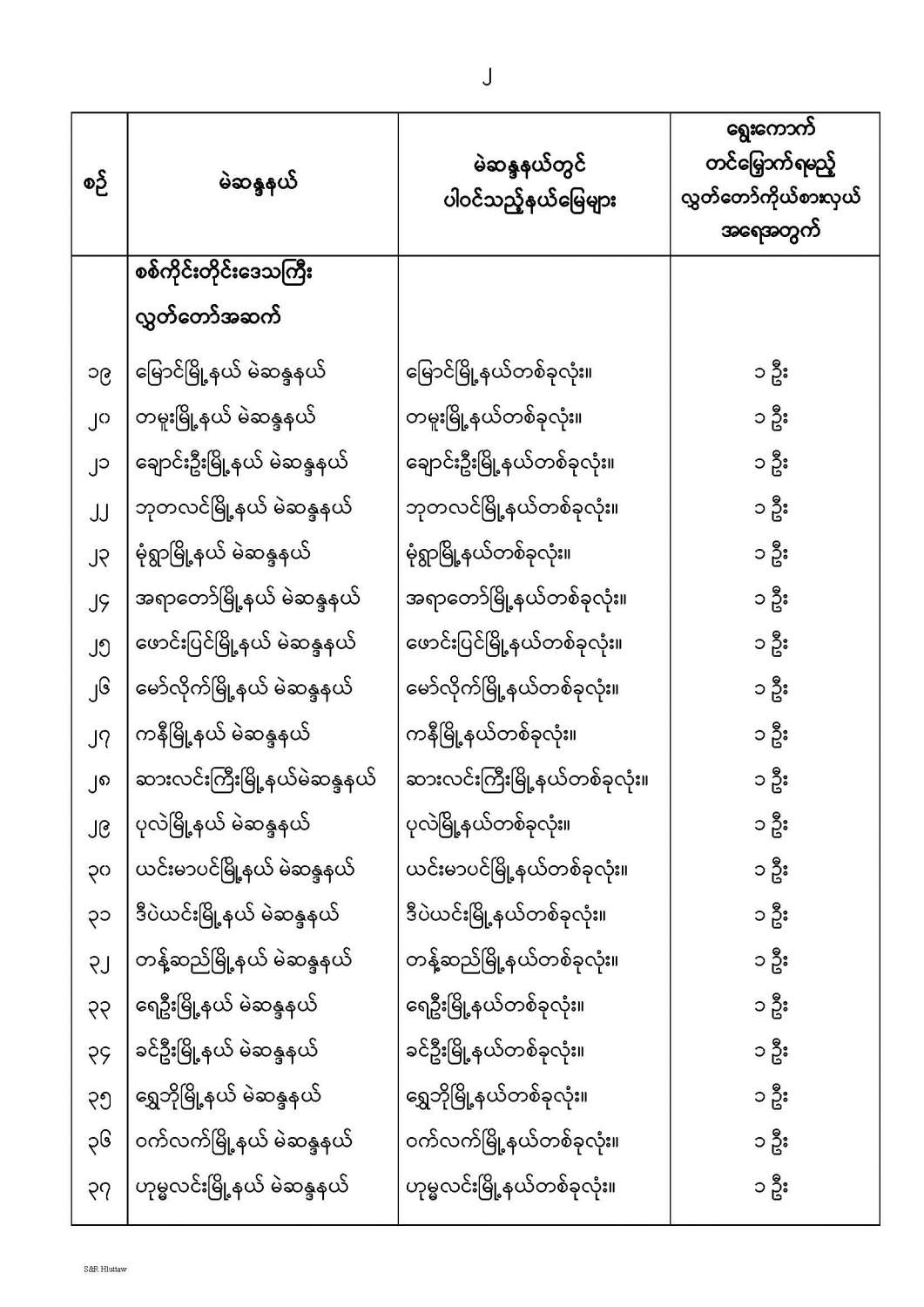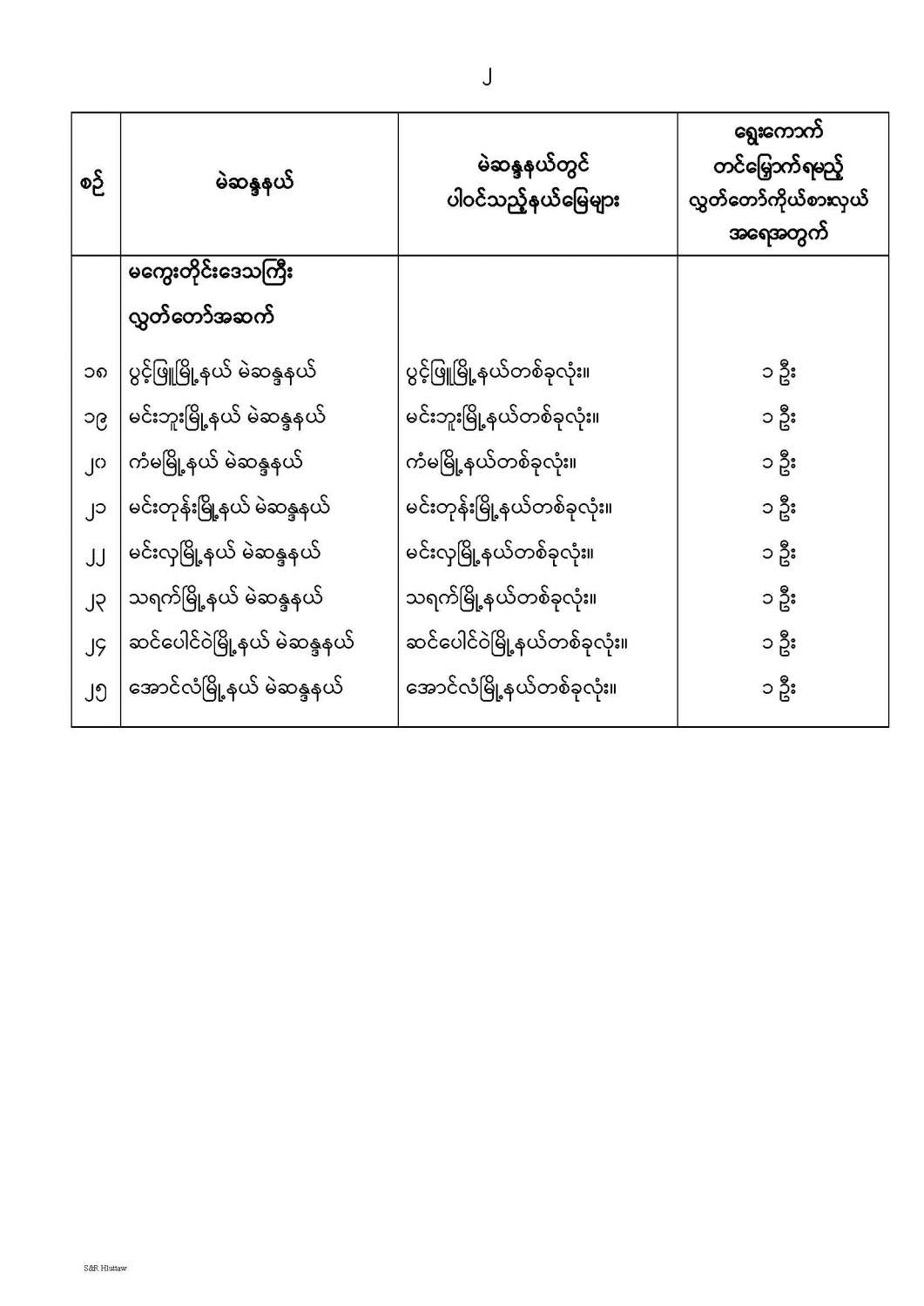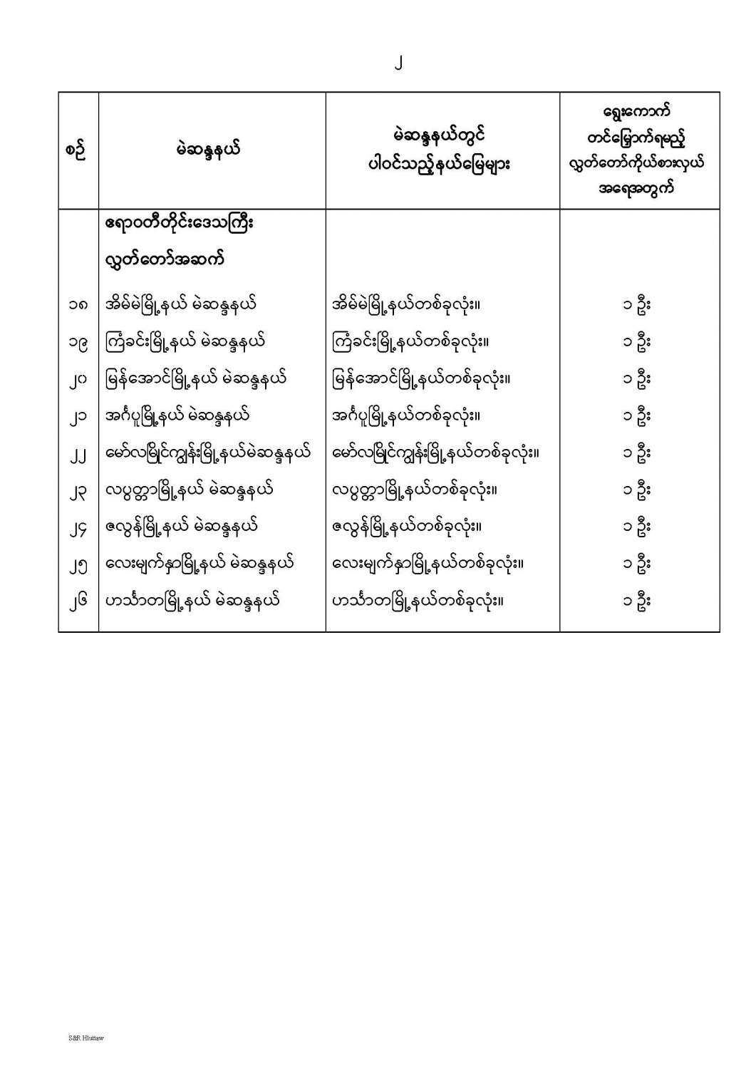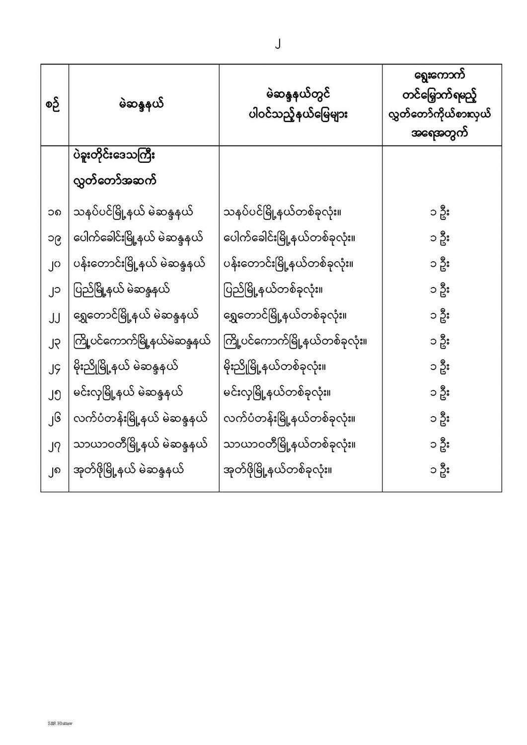 တိုင်းဒေသကြီးလွှတ်တော် သို့မဟုတ် ပြည်နယ်လွှတ်တော် မဲဆန္ဒနယ်များ သတ်မှတ်ကြေညာခြင်း