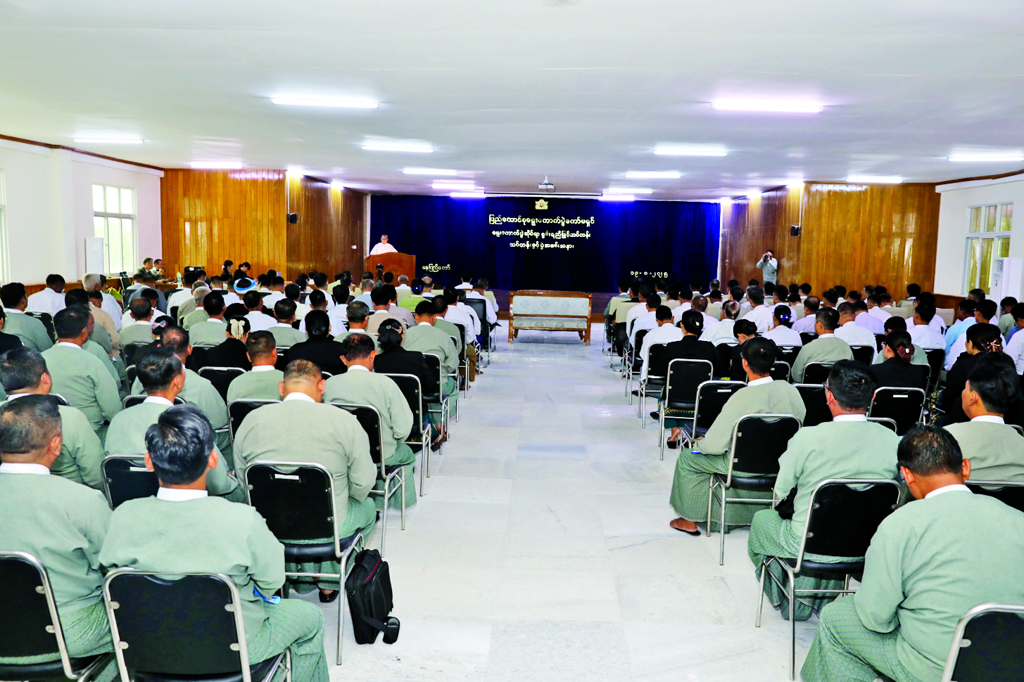 ပါတီစုံဒီမိုကရေစီ အထွေထွေရွေးကောက်ပွဲ အောင်မြင်စွာကျင်းပနိုင်ရန် ရွေးကောက်ပွဲကော်မရှင် အဖွဲ့ခွဲအဆင့်ဆင့်ရှိဥက္ကဋ္ဌ အဖွဲ့ဝင်များနှင့် ဝန်ထမ်းများအတွက် ရွေးကောက်ပွဲဆိုင်ရာ စွမ်းရည်မြှင့်သင်တန်းဖွင့်ပွဲအခမ်းအနားကို ယနေ့နံနက်ပိုင်းက နေပြည်တော်ရှိ ပြည်ထောင်စုရွေးကောက်ပွဲကော်မရှင်ရုံး၌ကျင်းပရာ ပြည်ထောင်စုရွေးကောက်ပွဲကော်မရှင်ဥက္ကဋ္ဌ ဦးသန်းစိုး၊ အဖွဲ့ဝင်များ၊ တိုင်းဒေသကြီး၊ ပြည်နယ်၊ ပြည်ထောင်စုနယ်မြေနှင့် ခရိုင်ရွေးကောက်ပွဲကော်မရှင် အဖွဲ့ခွဲအဆင့်ဆင့်မှ ဥက္ကဋ္ဌနှင့်အဖွဲ့ဝင်များ၊ တာဝန်ရှိသူများ တက်ရောက်ကြသည်။